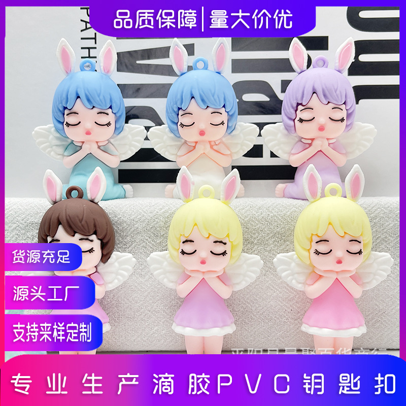 新しいかわいい漫画の天使の女の子のキーホルダーは装飾の天使のウサギの女の子のキーホルダーのカップルのペンダントの小さいプレゼントを掛けます。