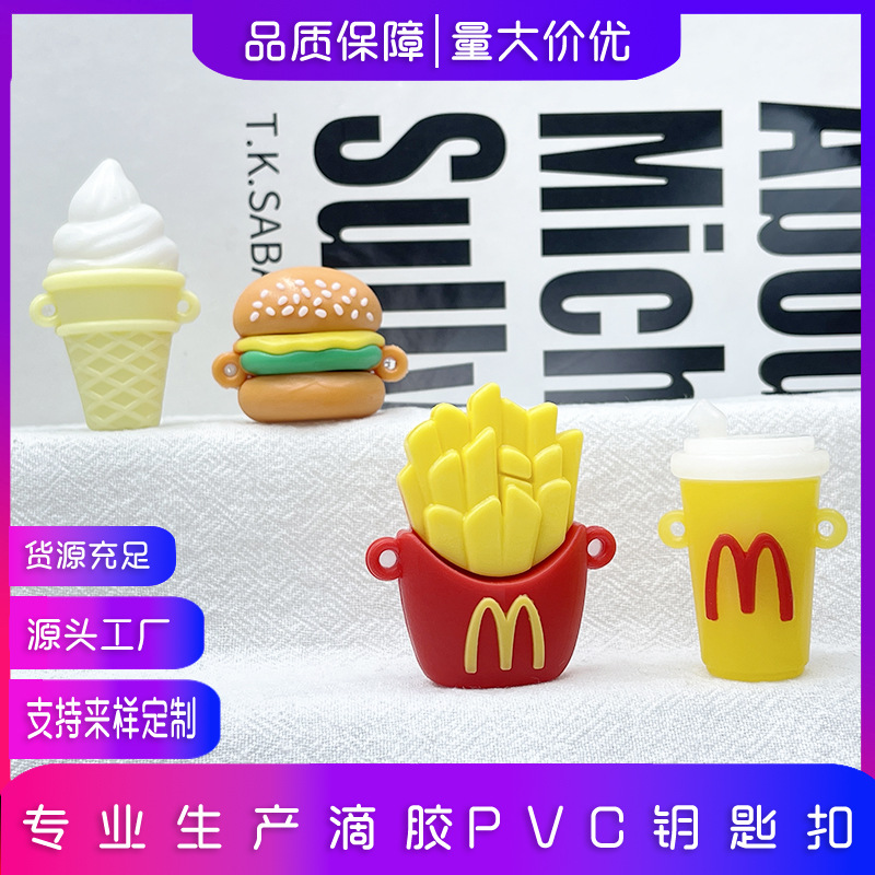 布布部品のハンバーガーフライドポテトのキーホルダーはマクドナルドのハンバーガー布布diyアクセサリーのソフトゴムです。