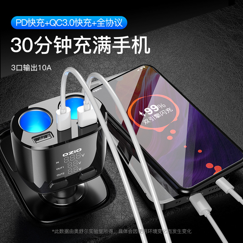 自動車用品車載充電器一牽引二点煙器変換プラグusbフラッシュ充電多機能車充電