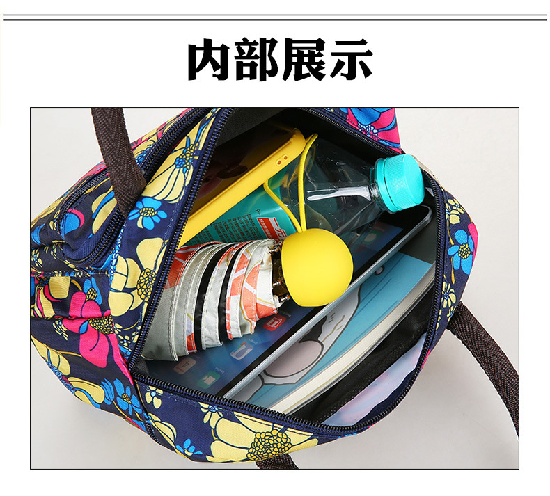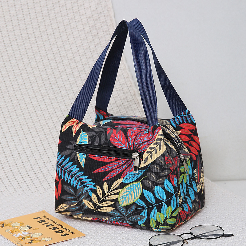 女性のカバンのキャンバスのハンドバッグは厚い防水の弁当のカバンのマミーの小さい布のカバンのオックスフォードの布の手を持ってお母さんのカバンのランチバッグを持ちます。