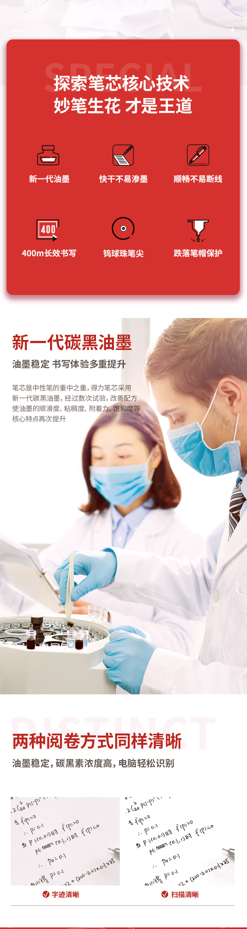 Deli有力v1連中三元試験筆学生用0.5mm押し中性カーボンブラックサインペン水筆