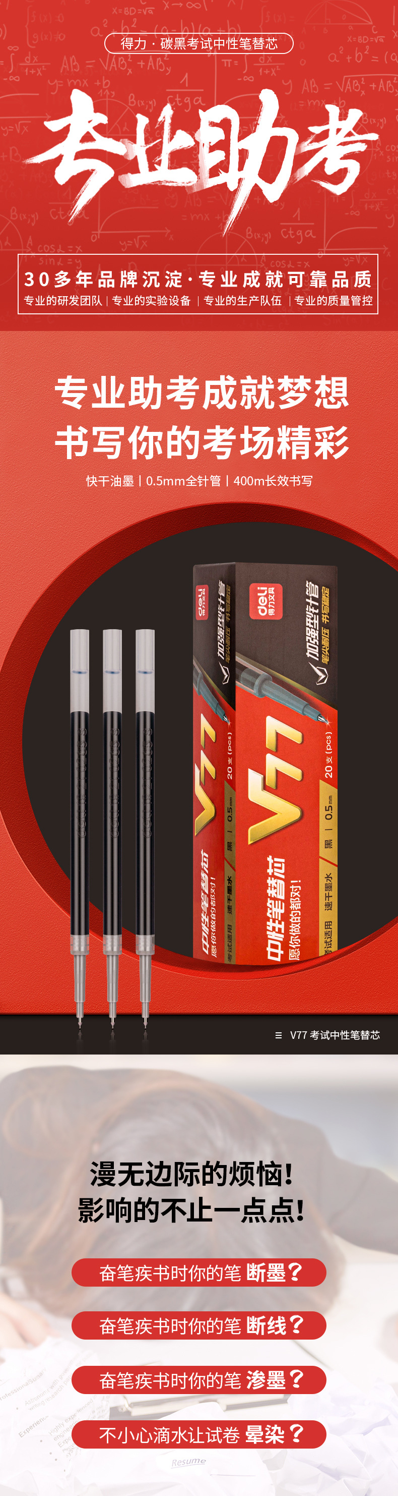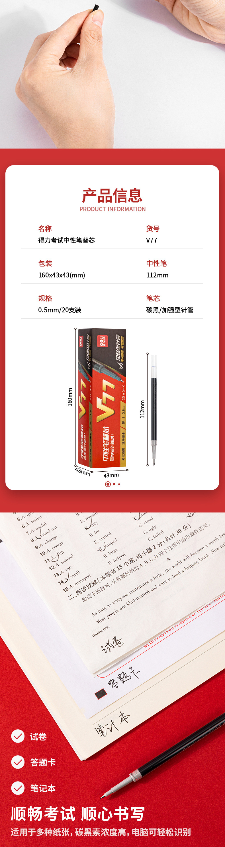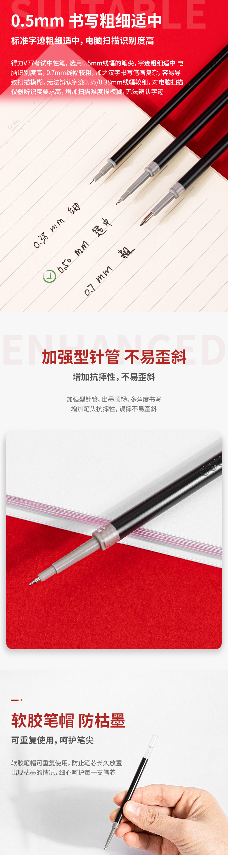 有力V77滑らか速乾補強型針管0.5押動交換芯中性紅芯事務学生用卸売り