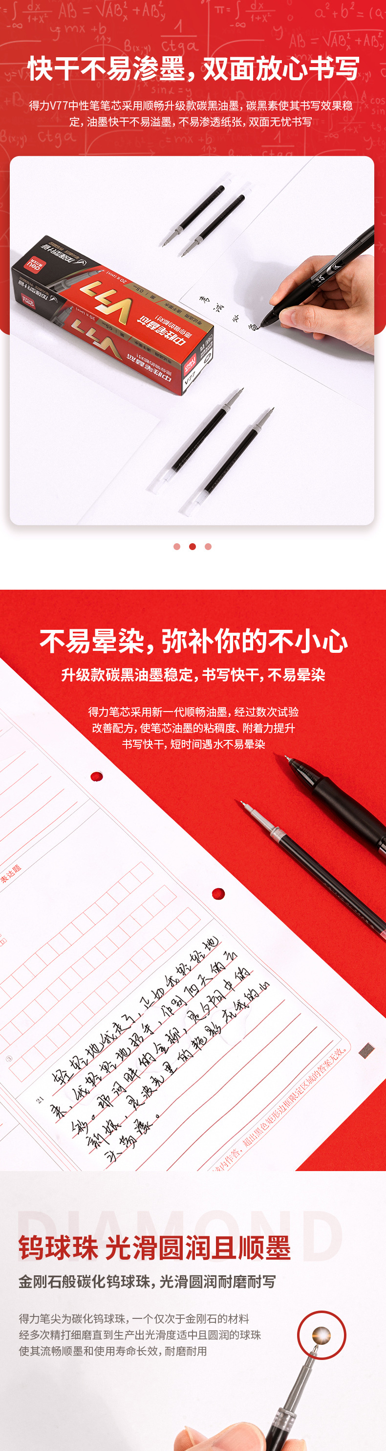 有力V77芯連中三元速乾試験中性芯0.5mm炭素ペン押しペン共通芯