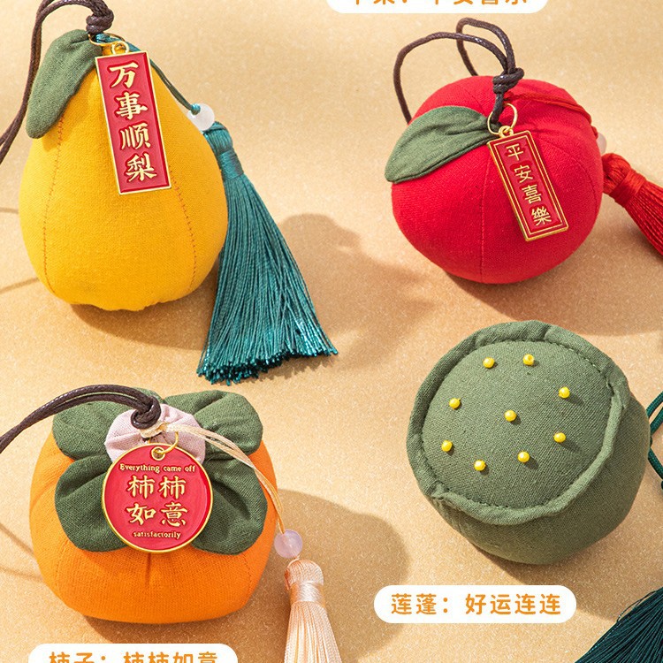 元旦の香り袋フルーツ柿DIY手作り材料パック柿柿如意空袋艾草蚊よけ刺繍香袋