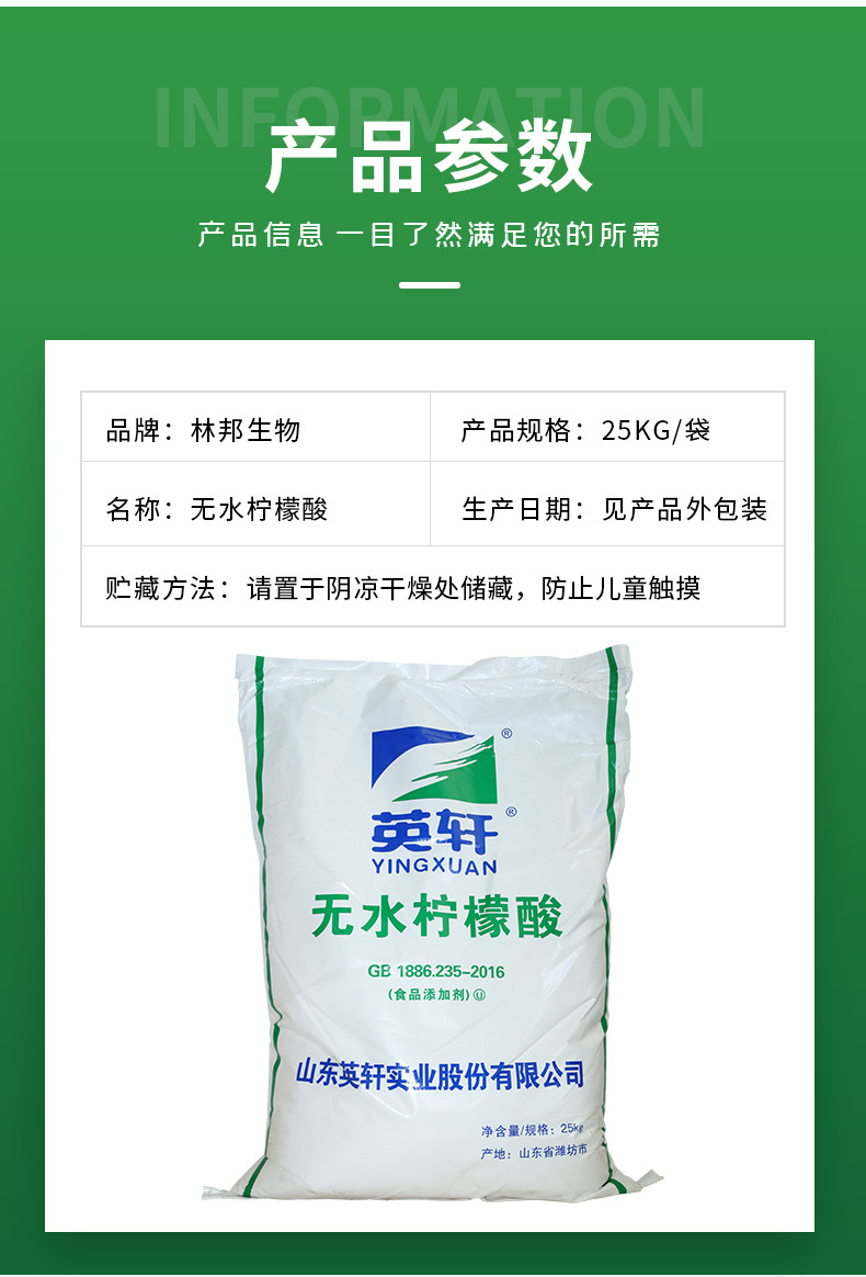 金禾英軒無水クエン酸食品級食用酸度調整剤除垢洗浄剤現物卸売り