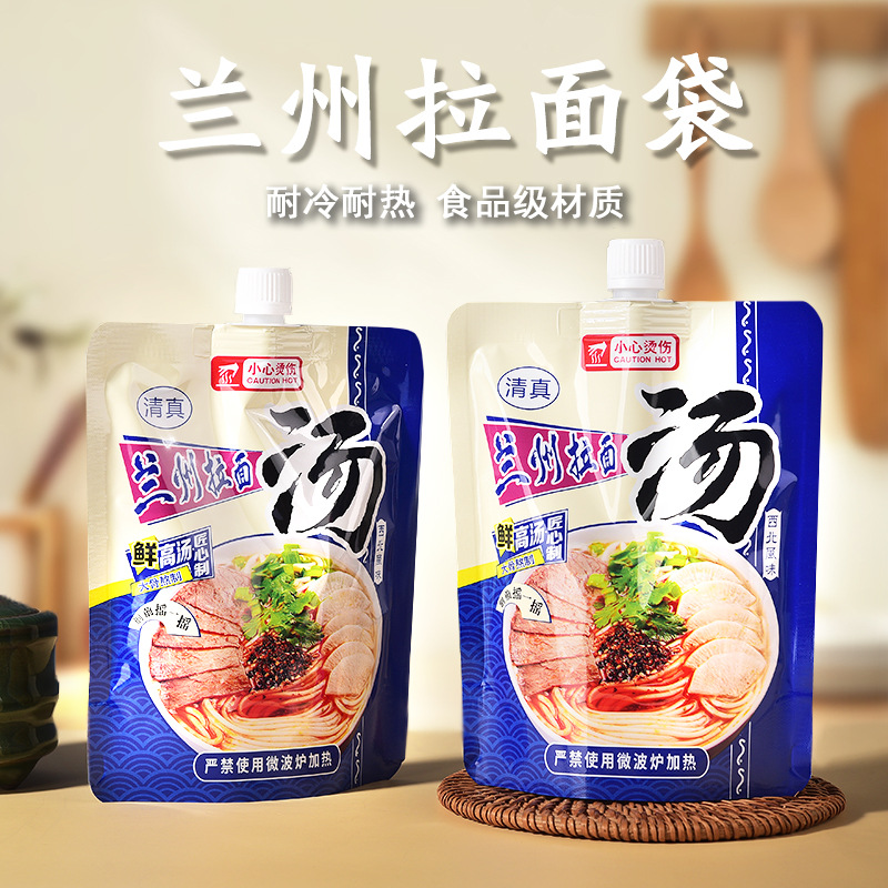 蘭州ラーメンの使い捨てのテイクアウトスープ袋のスープと水のソースを包装します。