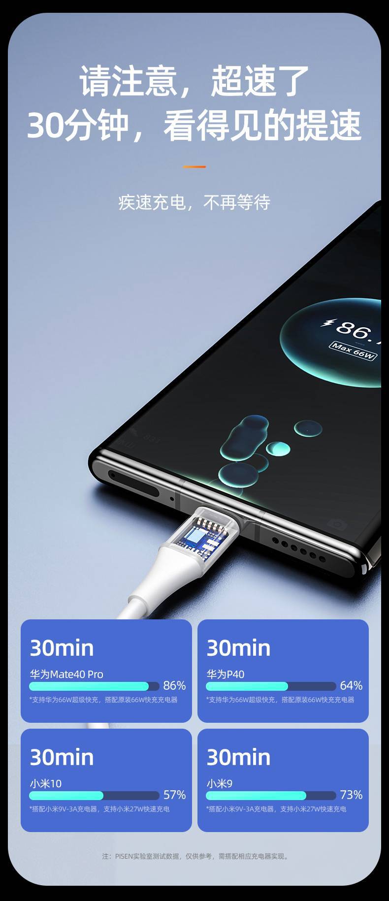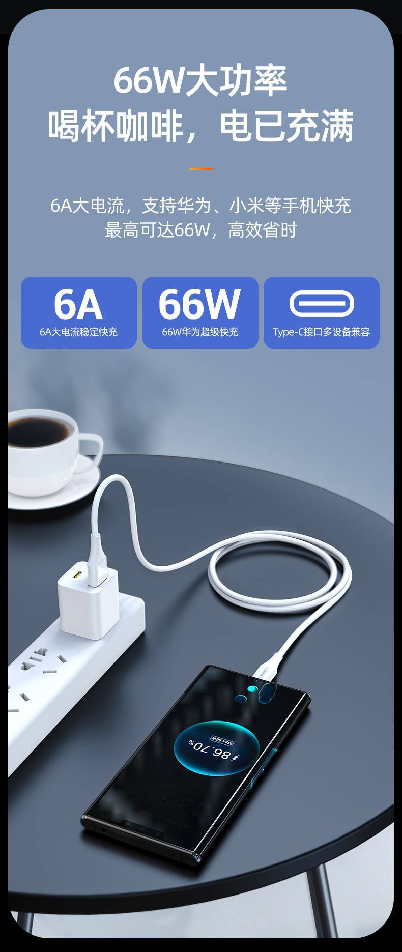 品勝データケーブルは華為栄光oppo携帯電話type-c超速充66wフラッシュ充6a米に適用される