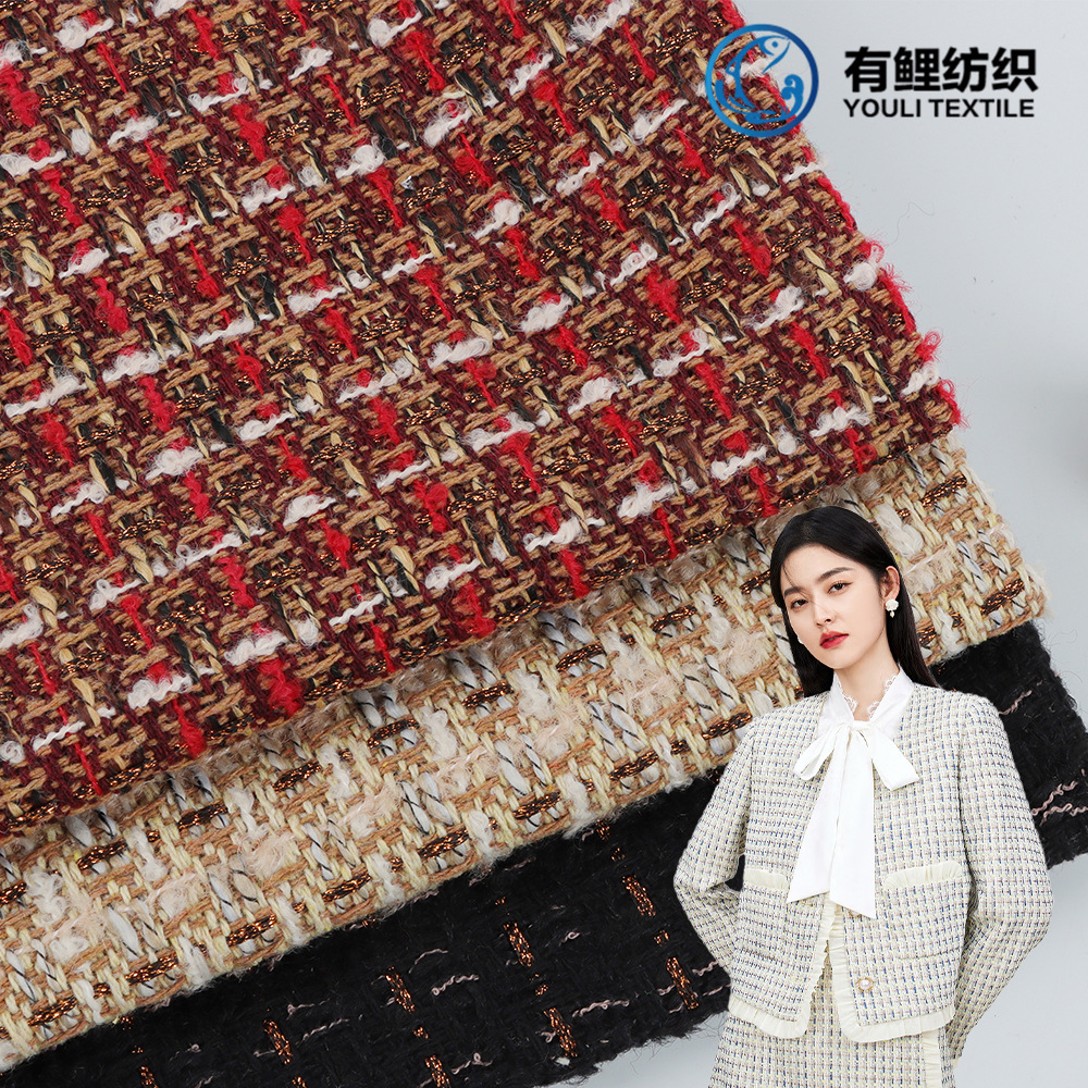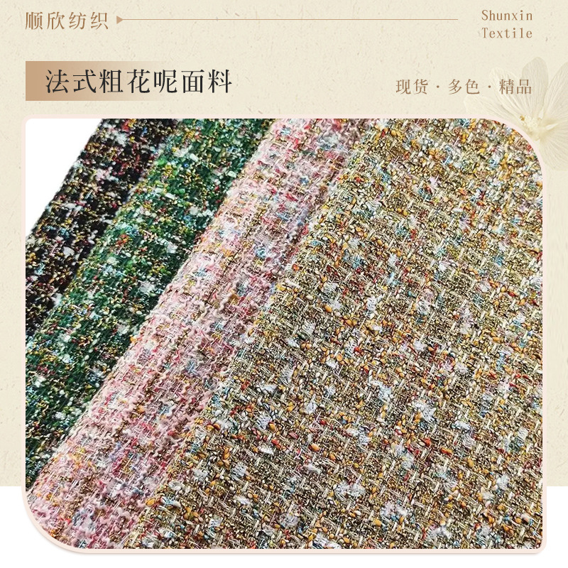 現貨金糸織り小香風生地 粗織りウール生地 秋冬コート・ジャケット・ファッションスーツ用生地