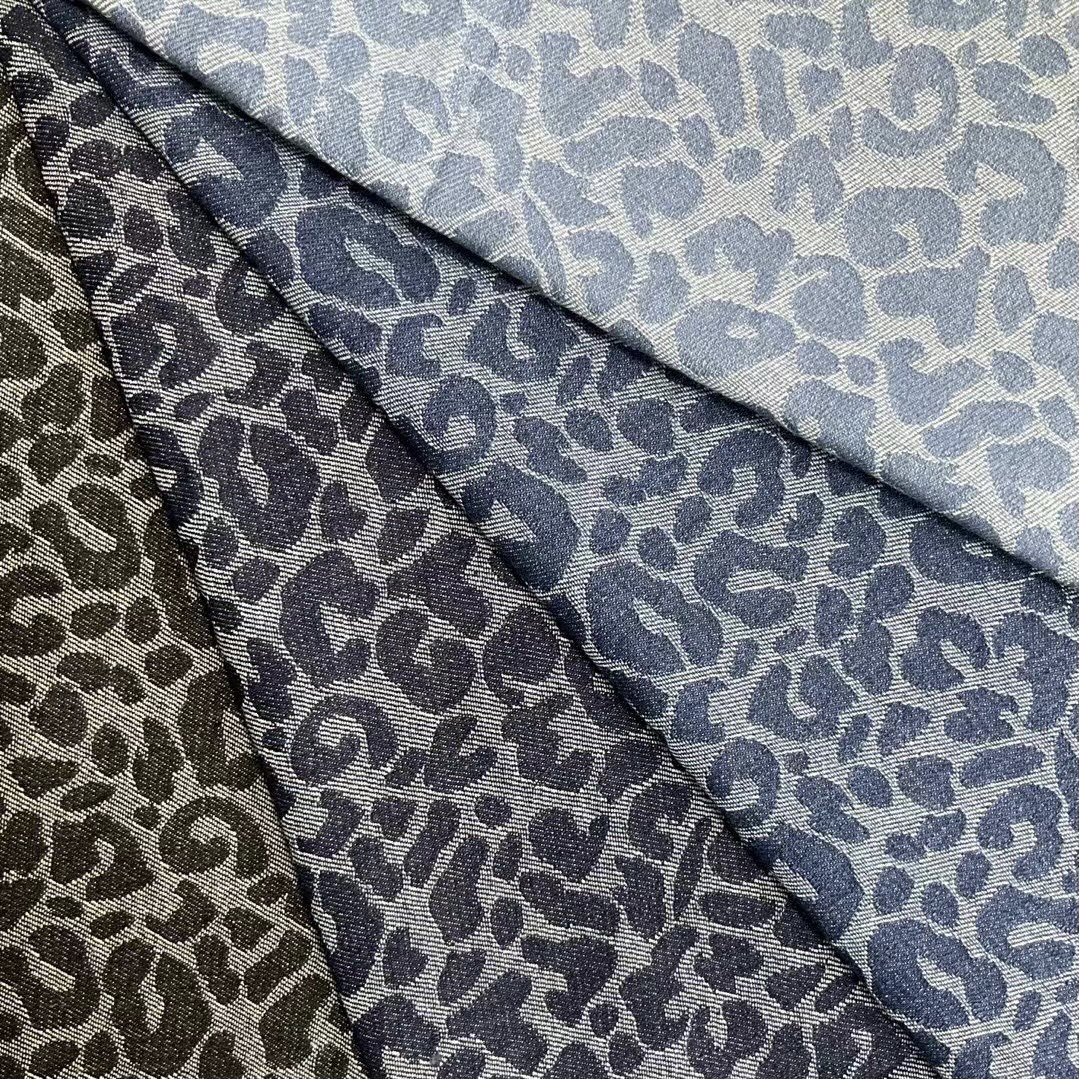 10*10秋冬モデル無弾ジャカードデニム10オンスブルー豹紋ジャカード男女デニムコート生地