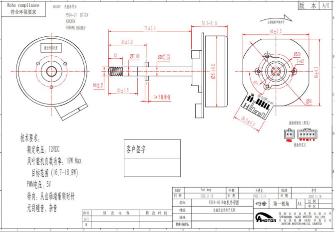 外転子ブラシレスモーター 61/56 加湿器循環ファン空気清浄機浴室照明ファン用モーター