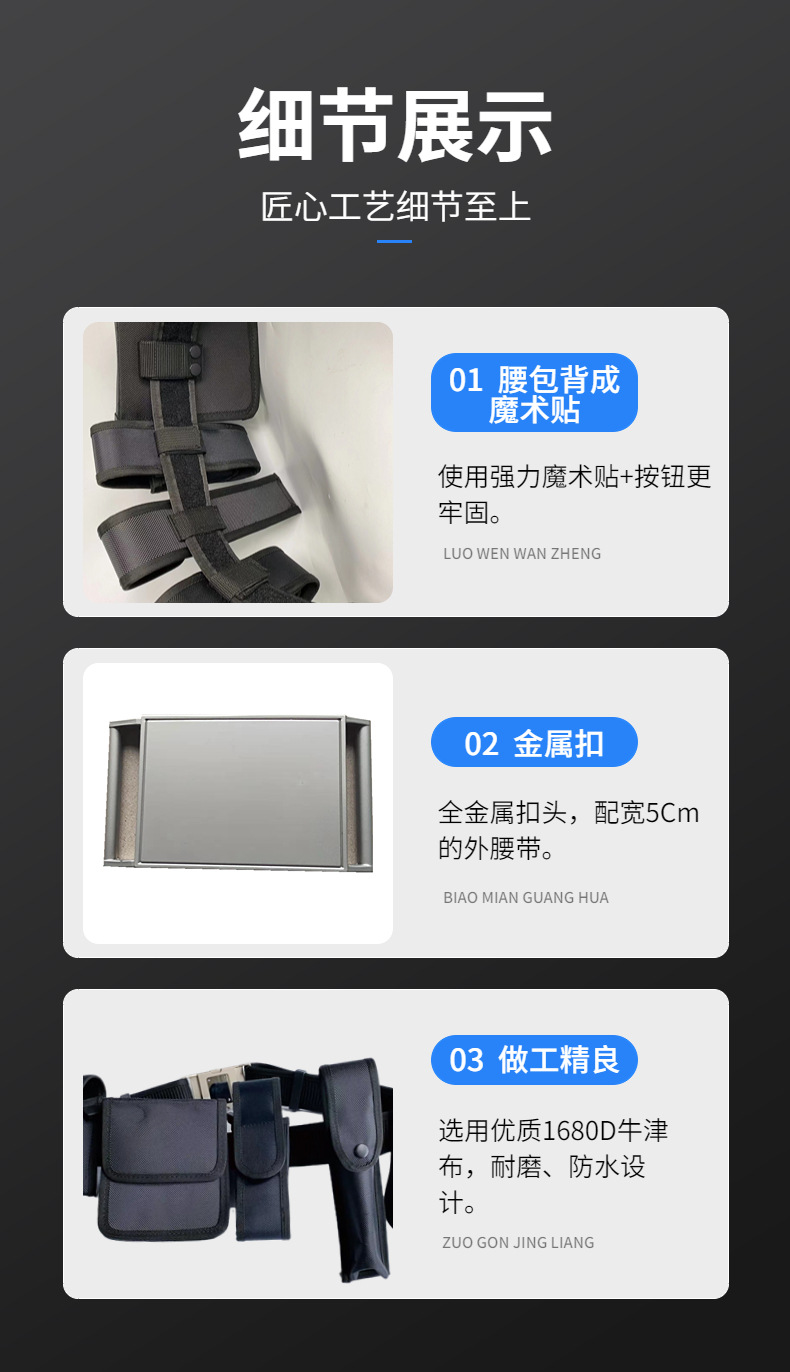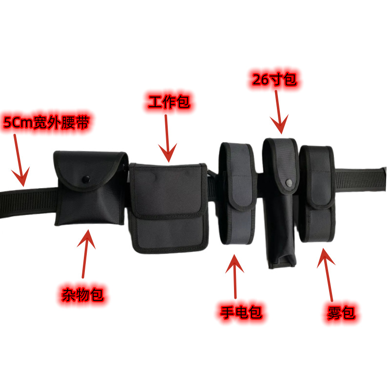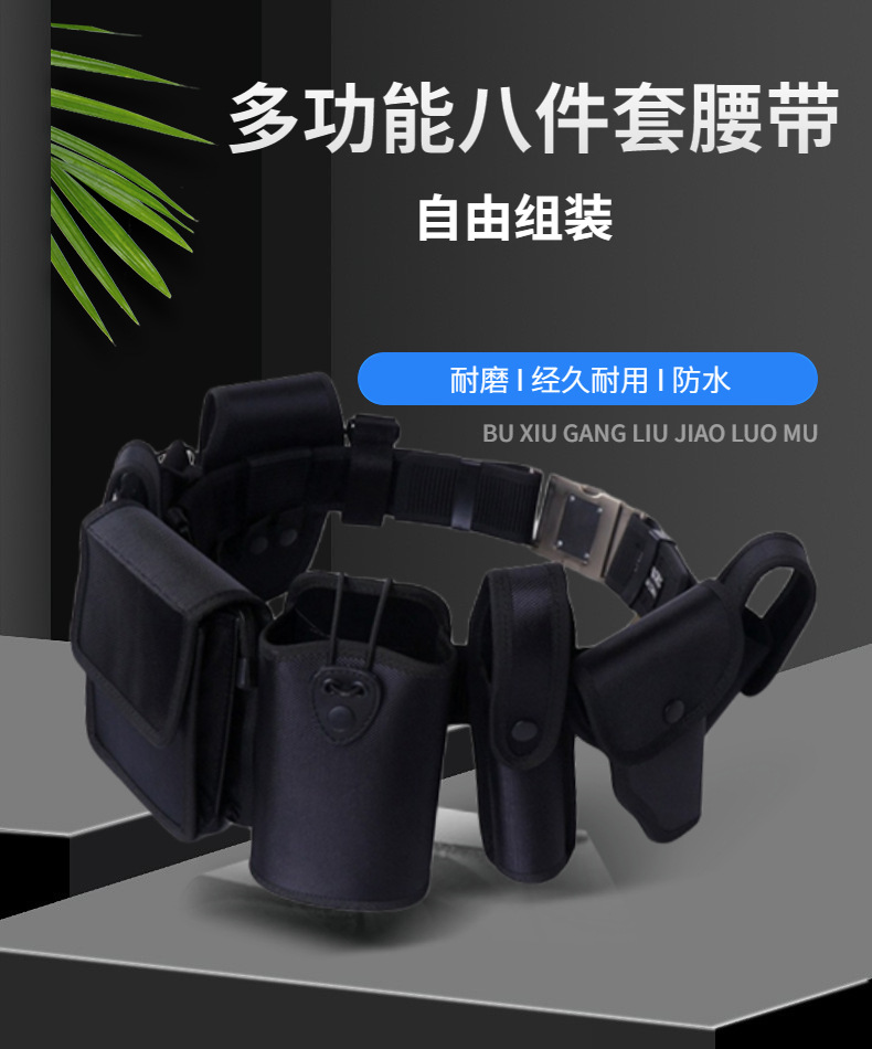 卸売りナイロン多機能八点セットウエストバッグ保安勤務パトロール訓練織り戸外警備男黒ベルト