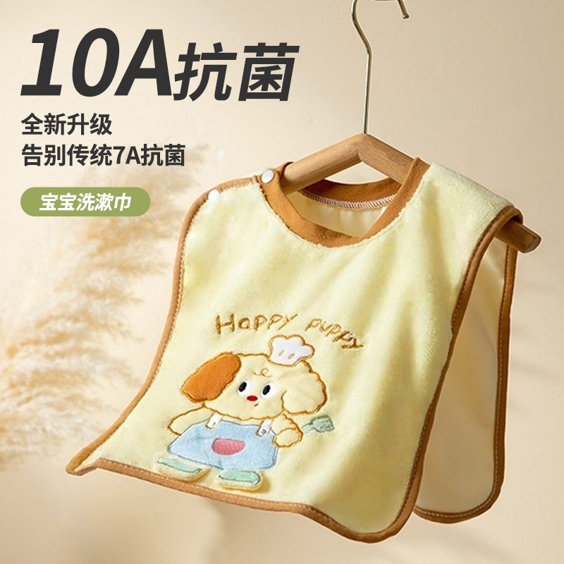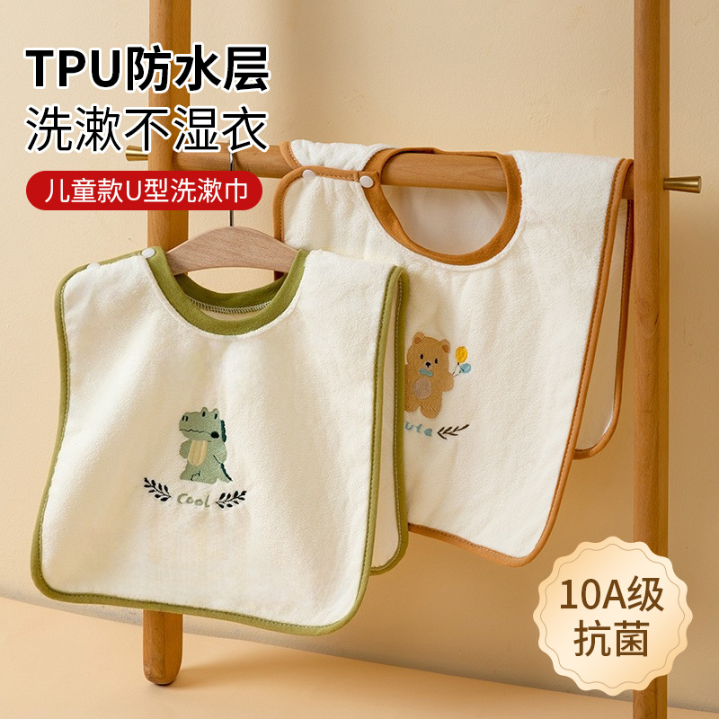 10A抗菌儿童洗漱巾围兜卡通防水一巾多用卫生间宝宝洗漱幼儿毛巾a