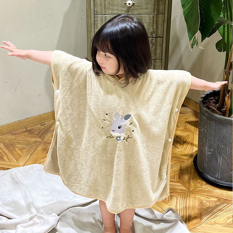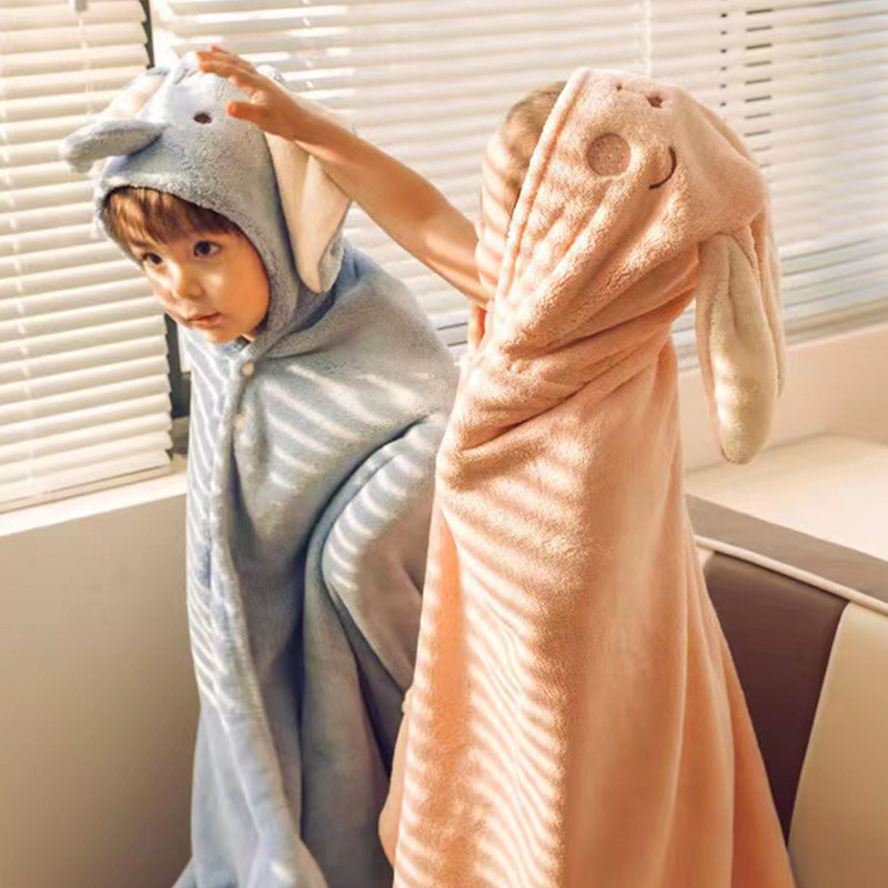 コーラルベルベット子供用ウェアラブルバスタオル、柔らかく吸収性のあるマント、漫画のかわいいフード付きバスローブ、ベビーバスタオル