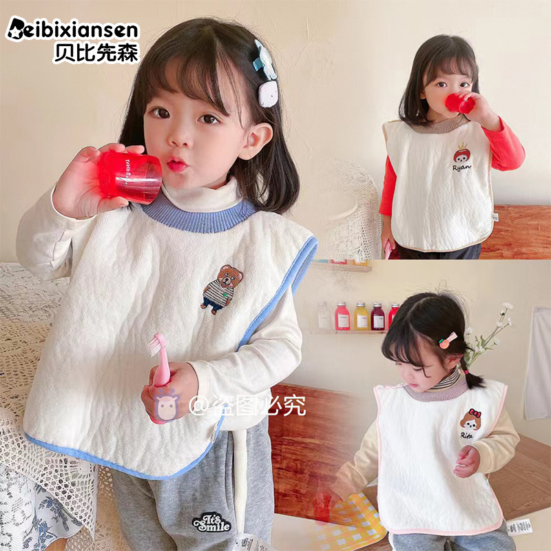 儿童可穿式洗漱围兜可爱宝宝10a抗菌不湿衣服防水防脏吸水洗漱巾