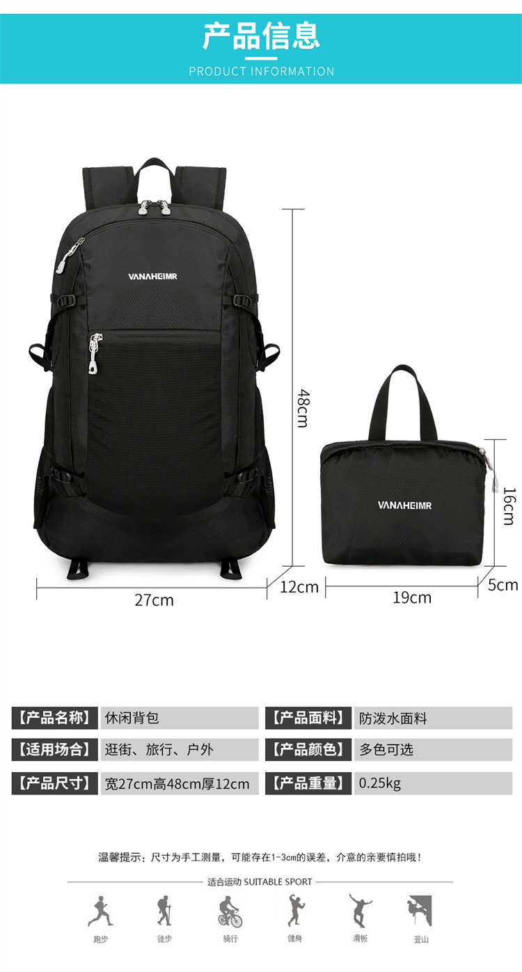 2025国境を越えて起爆した戸外折り畳みランドセル防水超軽量携帯旅行カバン戸外包折り畳みバッグ卸売り