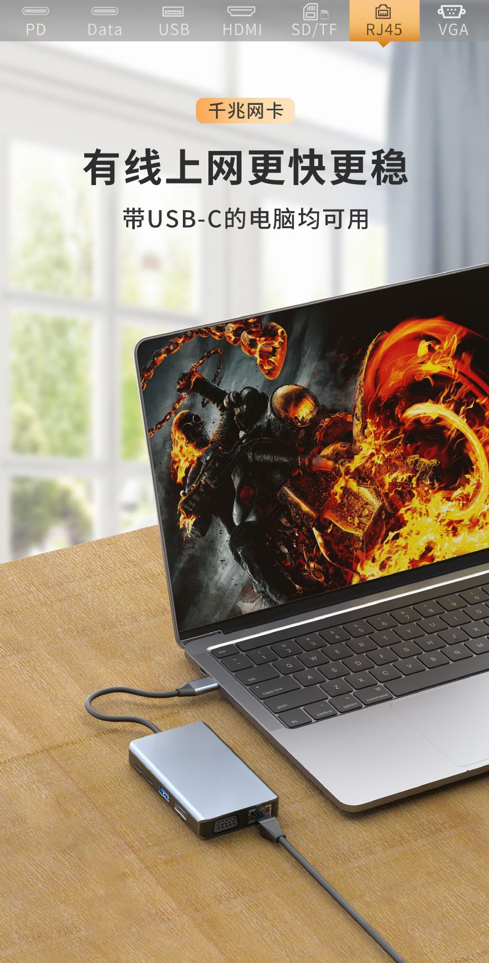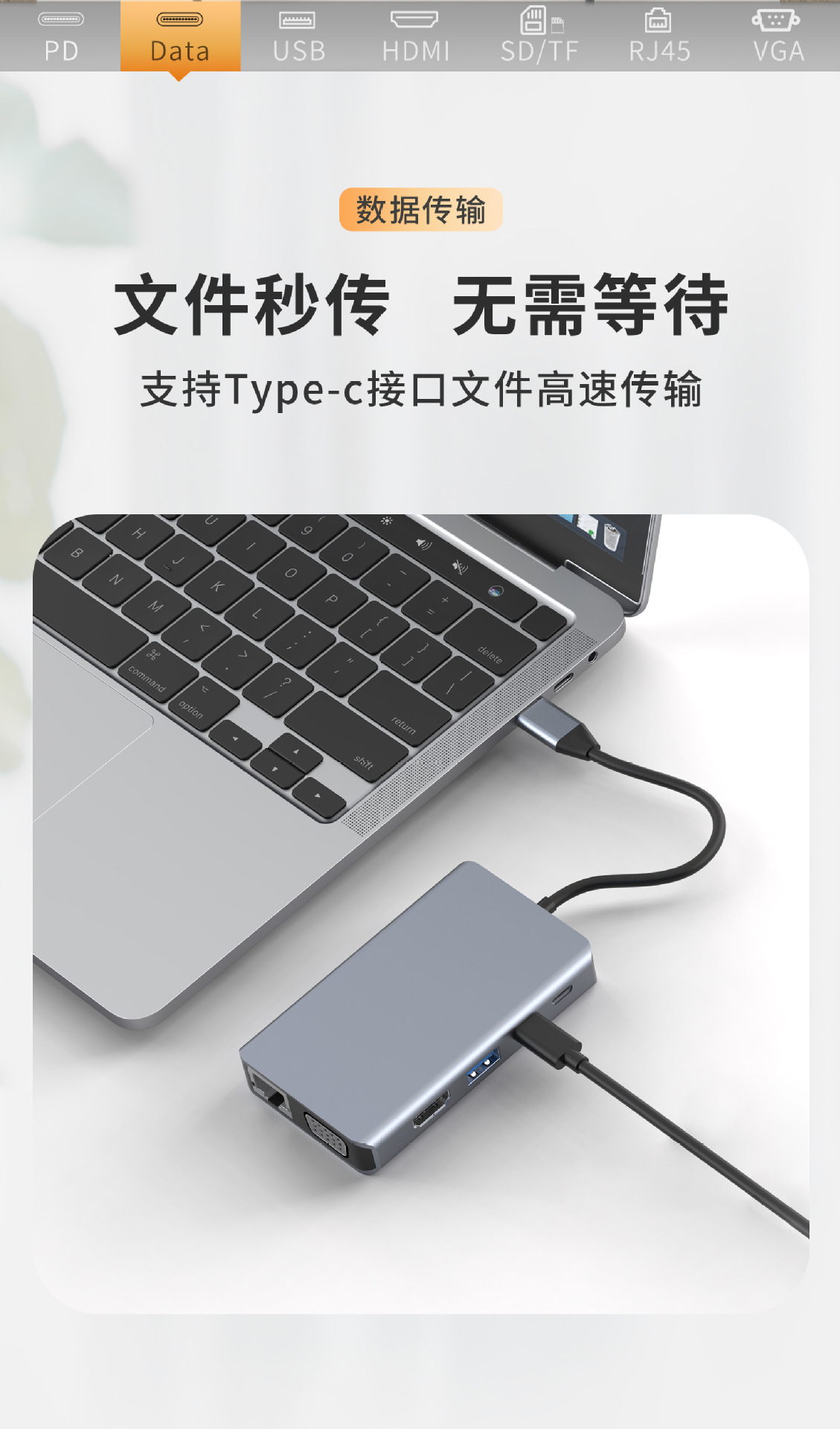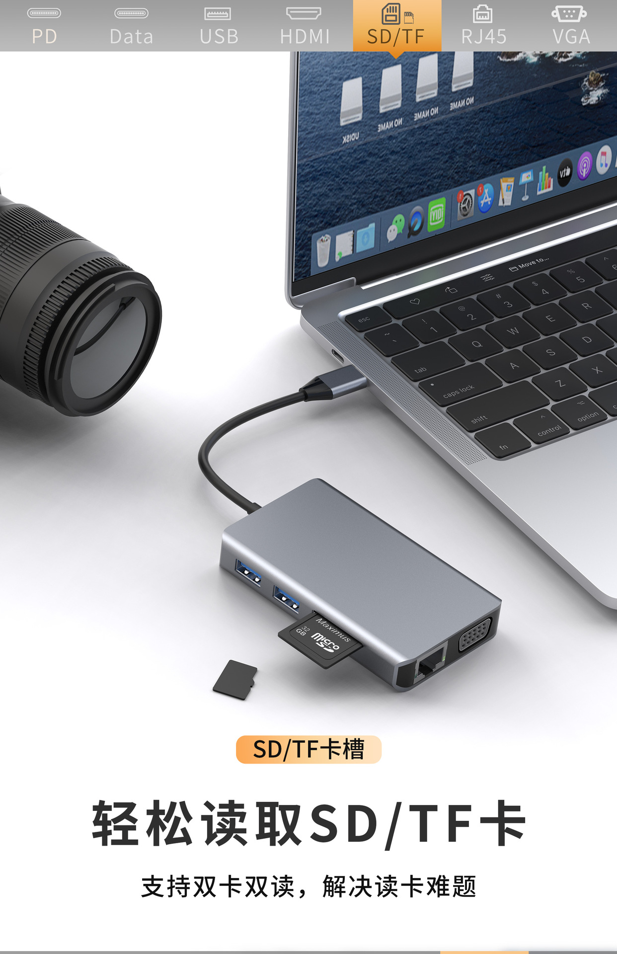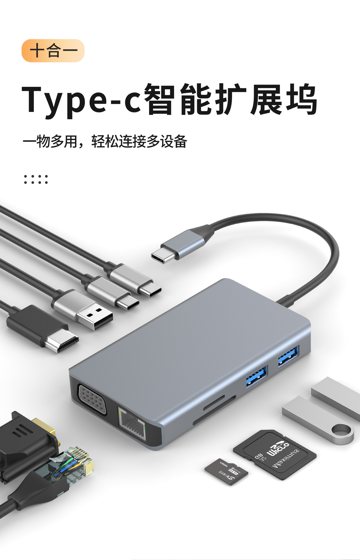 跨境八合一type-c扩展坞带网口HDMI读卡器手机电脑多功能集线器