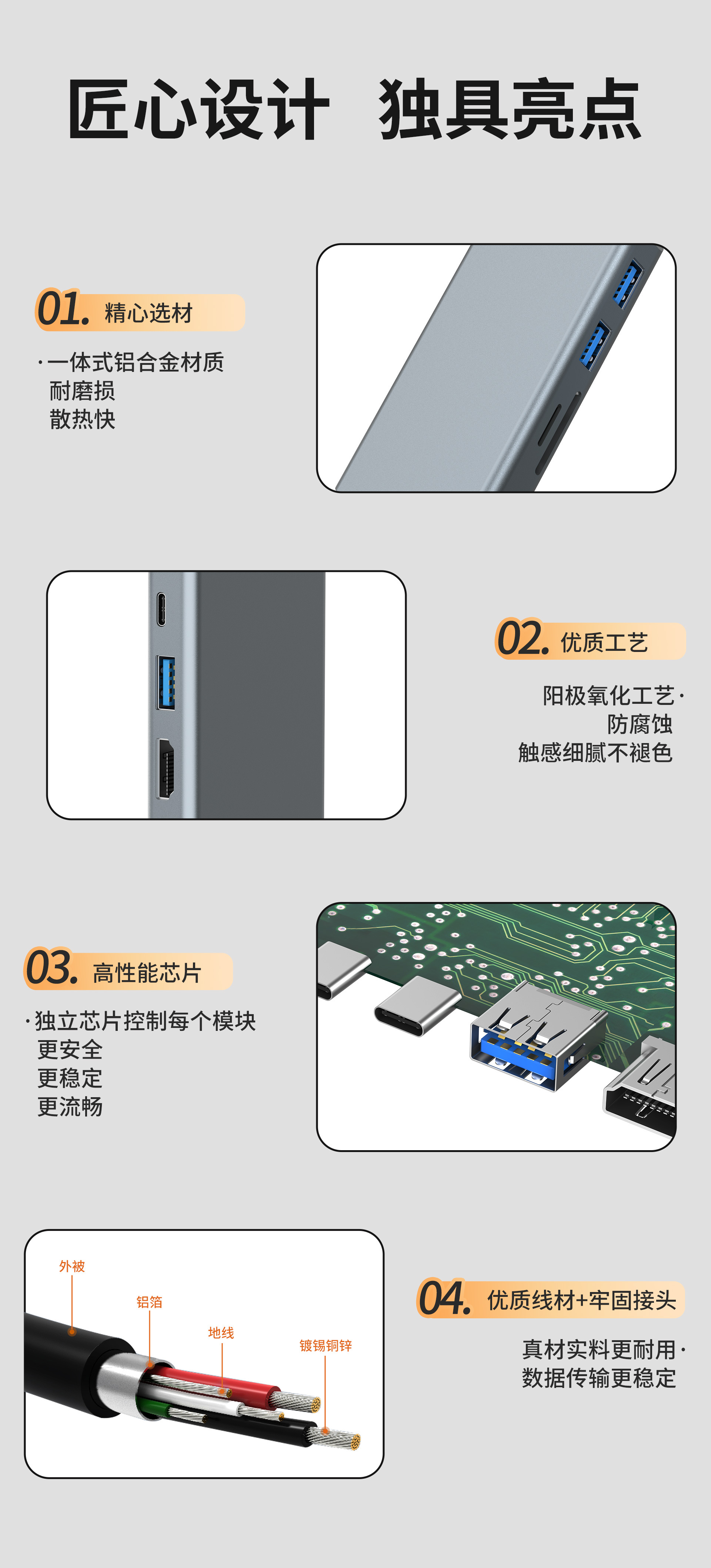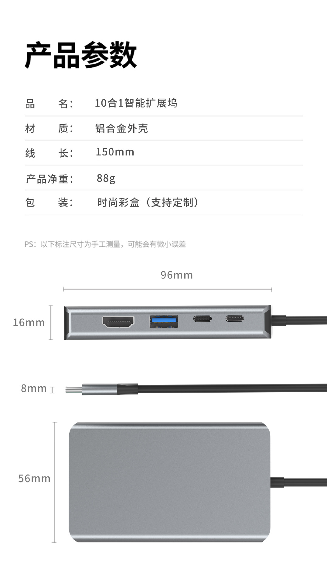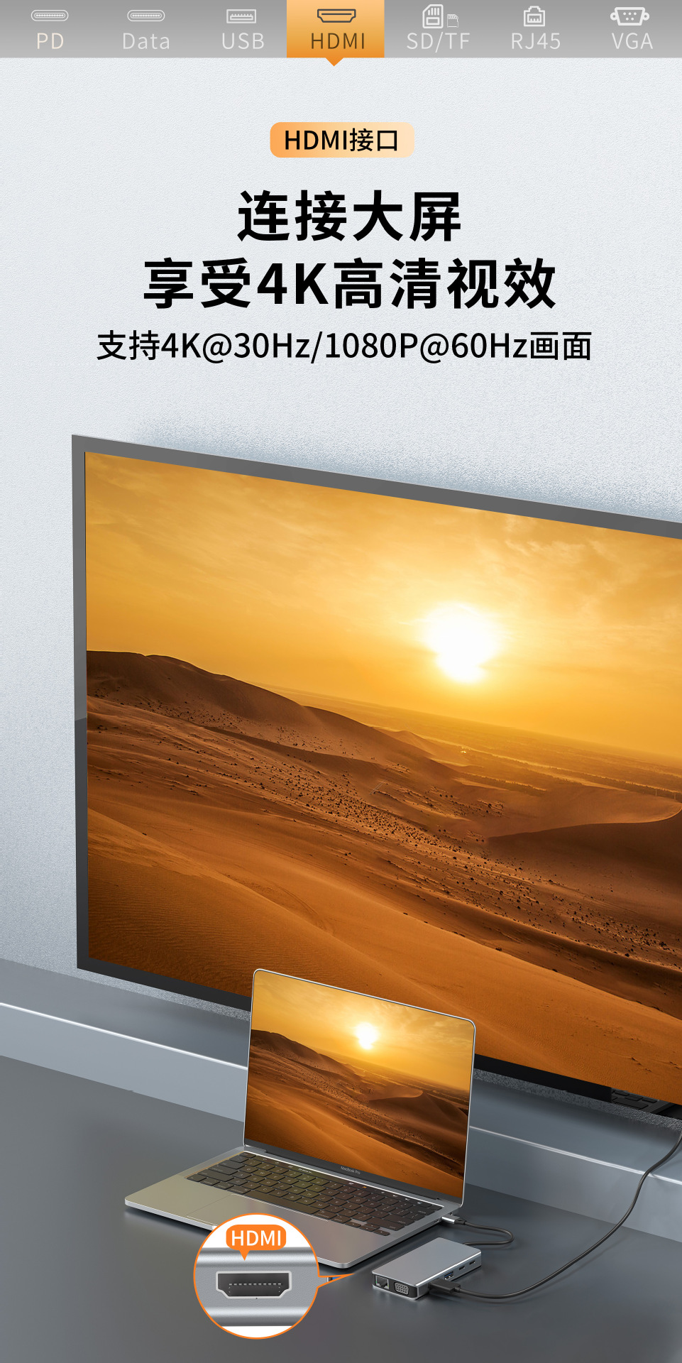 4合一拓展坞USB3.0适用于typec笔记本扩展坞支持PD快充HDMI高清线