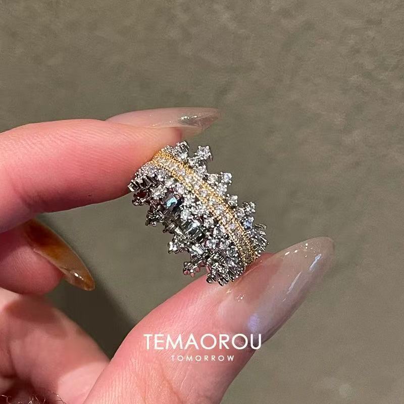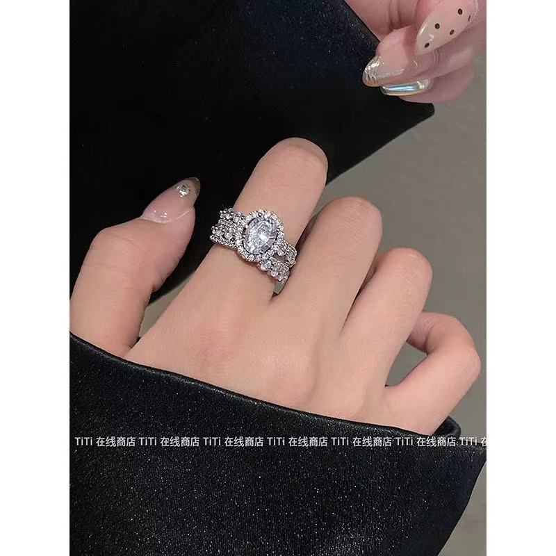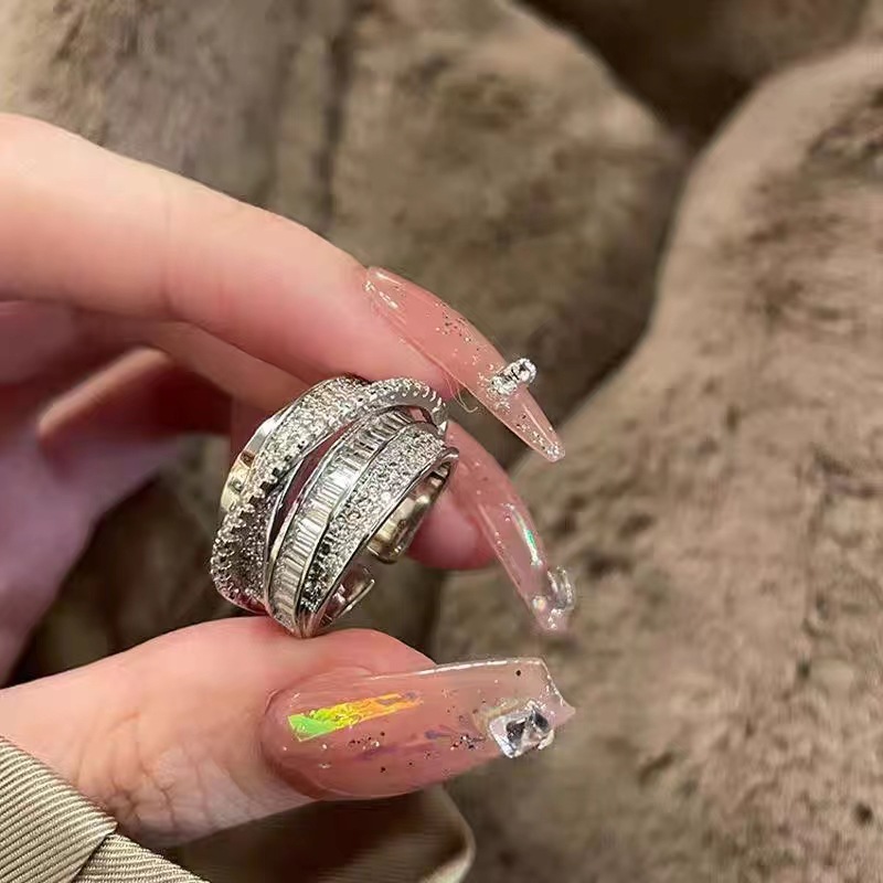 軽くて豪華な透かし彫りのジルコンの指輪の大衆の設計の高級感の開口戒の2024新型の爆発的なファッションの指輪の装飾