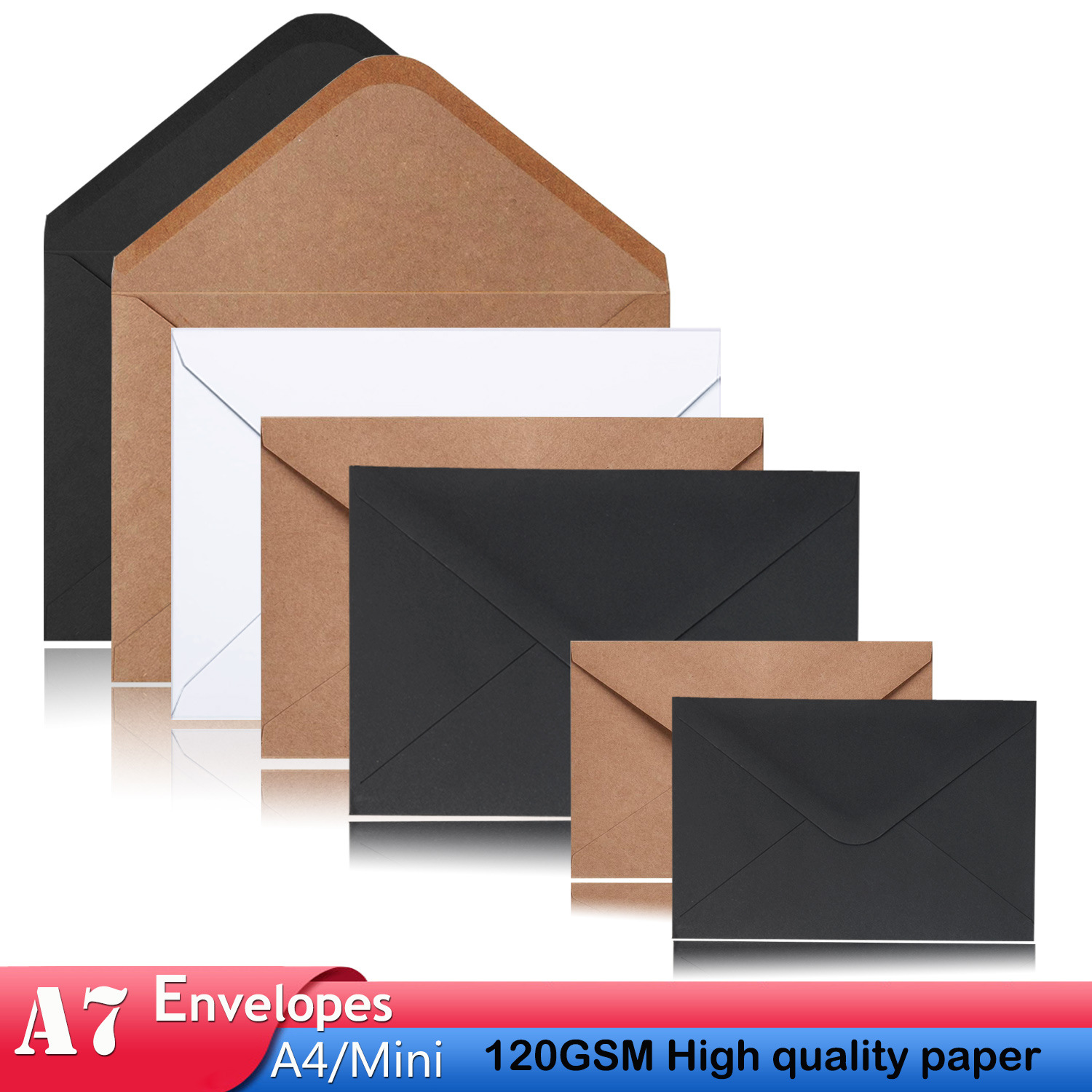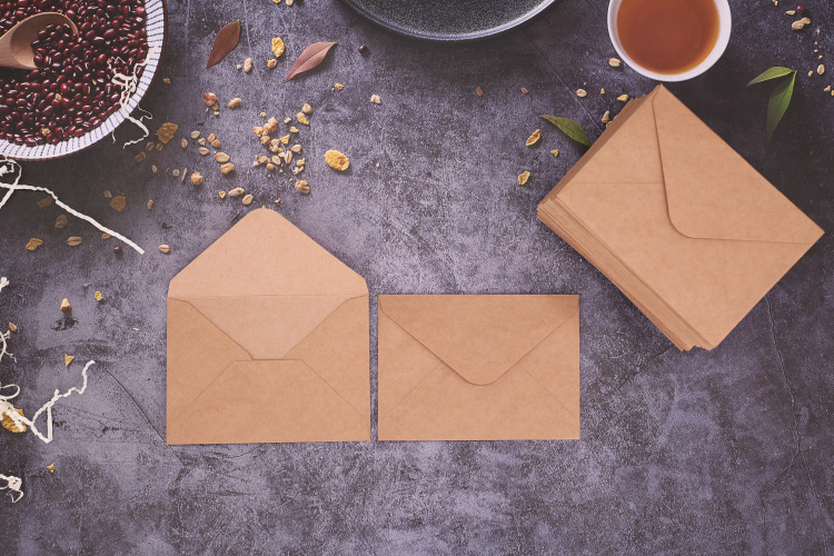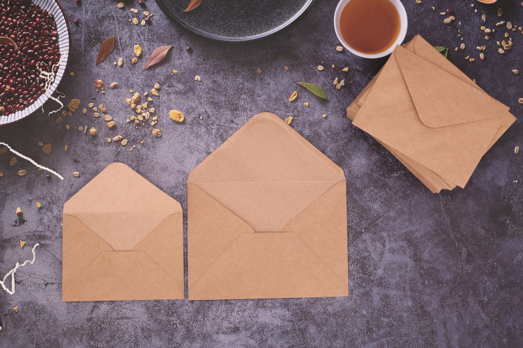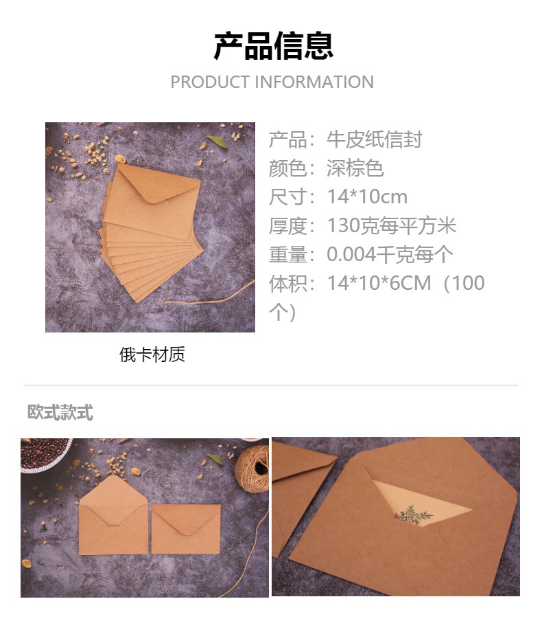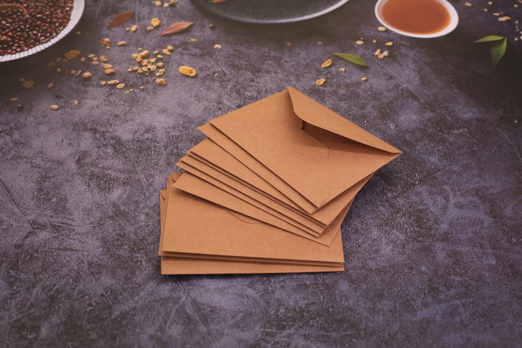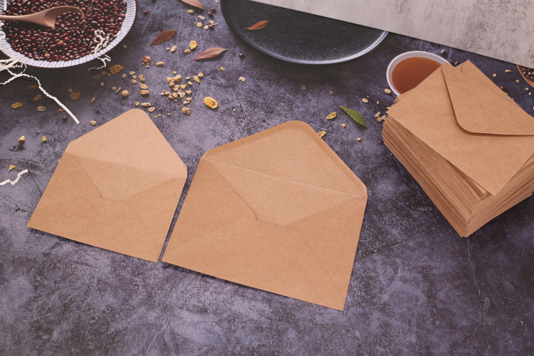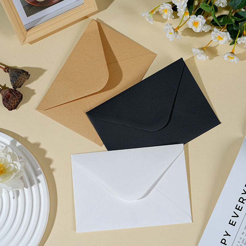 复古牛皮纸/黑色白色口水胶信封贺卡明信片收纳纸袋纸质可邮寄