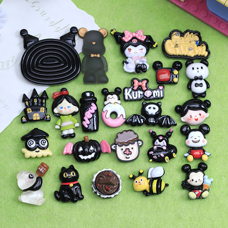 黒系樹脂部品diyクリームゴム携帯ケース髪紐材料穴靴ボタン冷蔵庫貼りアクセサリー