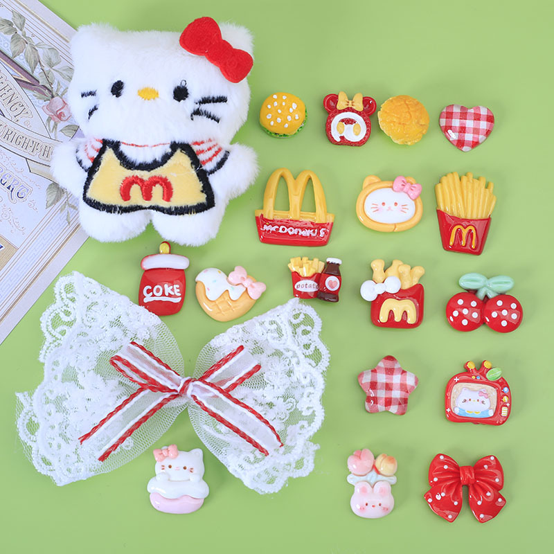 可爱毛绒KT猫蕾丝领结饰品diy奶油胶手机壳洞洞鞋发夹树脂配件
