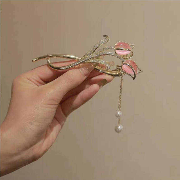 新商品のチューリップの超仙流蘇は挟みを挟んで、水ドリルの花のヘアピンの髪飾りネットの赤い蝶のクリップの髪飾りをします。