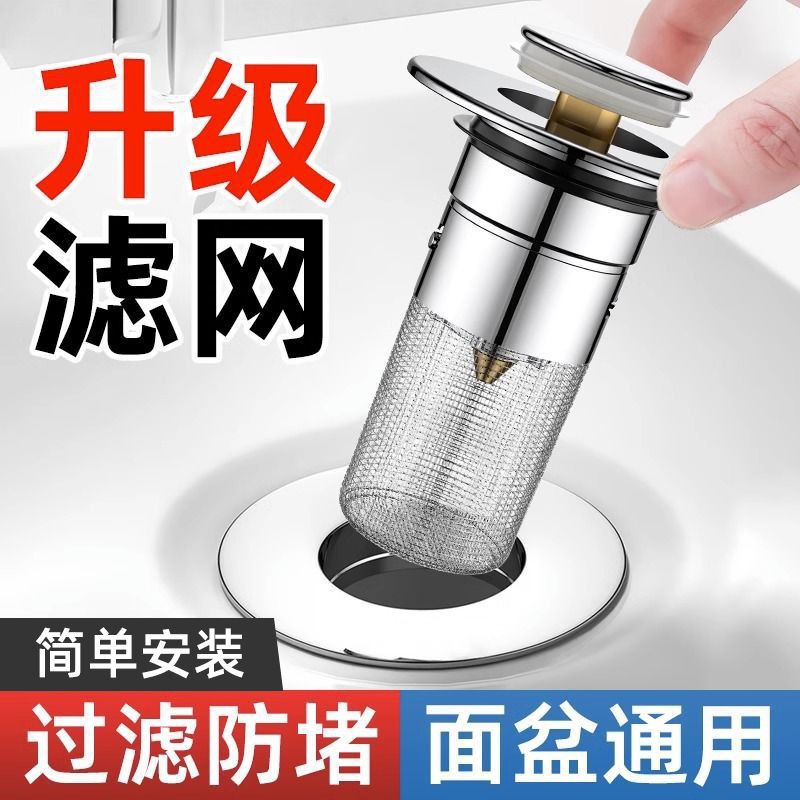 アップグレードされた厚みのある洗面器の漏れストッパー、防臭プッシュ式アンチブロックバウンスフィルター、排水ユニバーサルアクセサリー