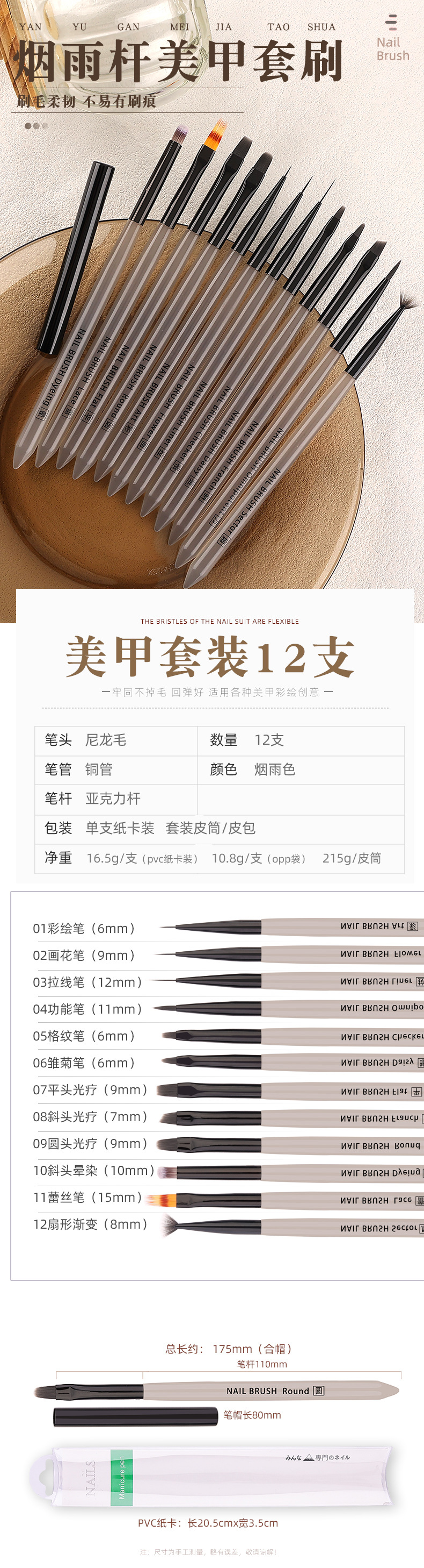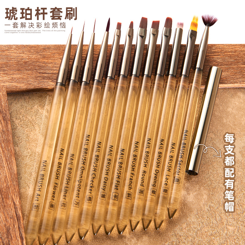 琥珀色のマニキュアブラシ一式セット、和風糸引き掃除機能ペン、特殊光線療法ペン、スマッジペン