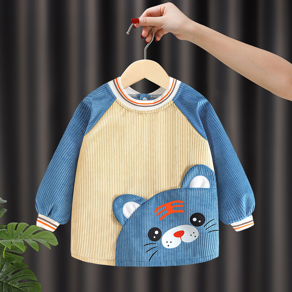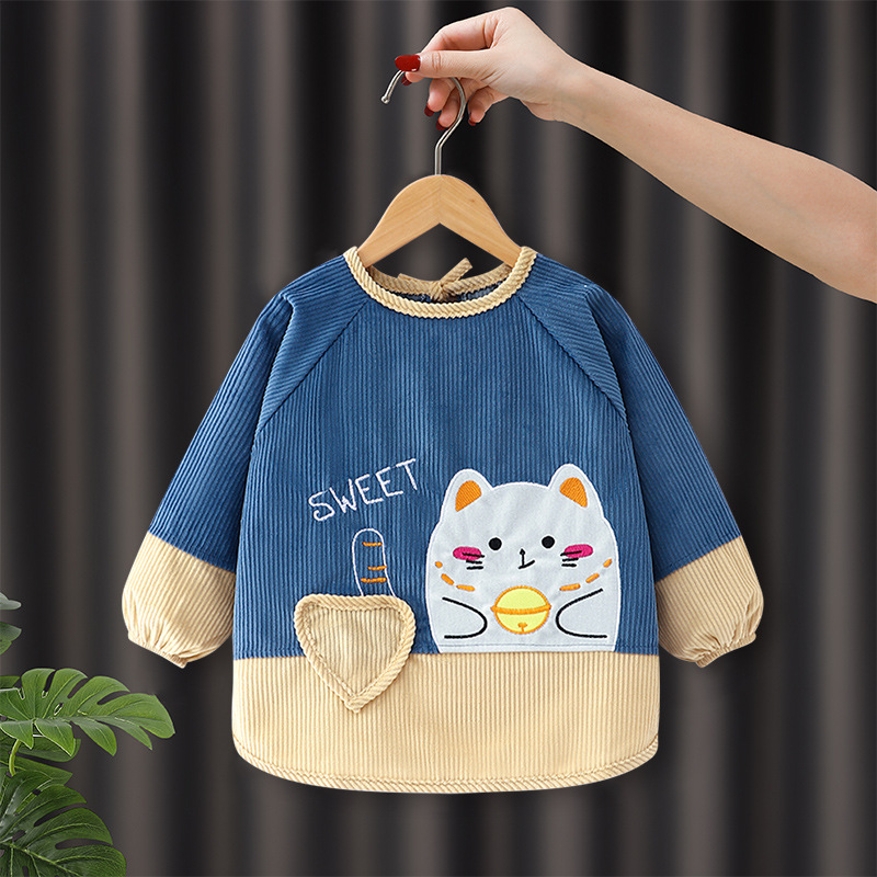 子供のカバーの赤ちゃんの食事のよだれかけの防水汚れ防止のご飯のポケットのコーデュロイのエプロンの秋冬の女の子の女の子は服を着ます。