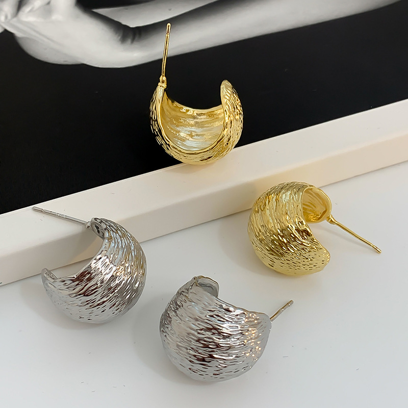 S925銀針誇張金属円ピアス高級感個性風潮イヤリング