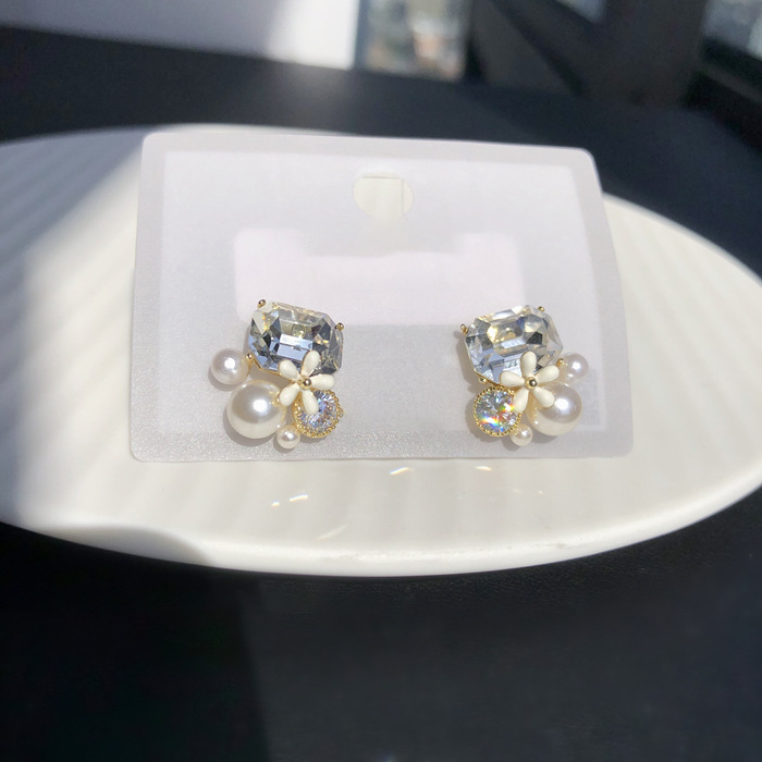 S925銀針超フラッシュブロックに真珠ピアスの花のデザイン感イヤリングの小衆の甘くて精巧な耳飾りを入れます。