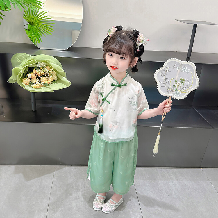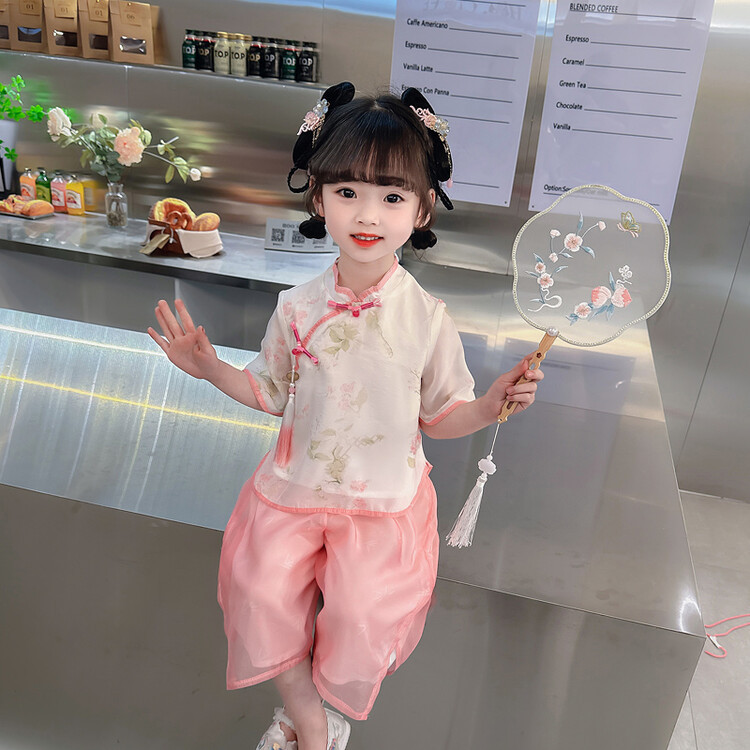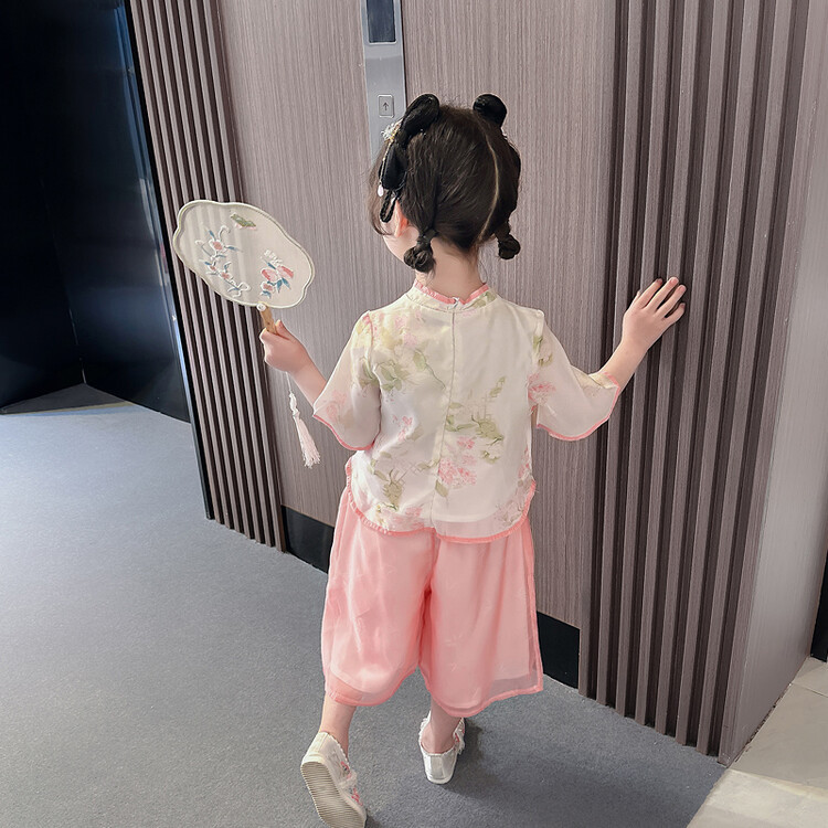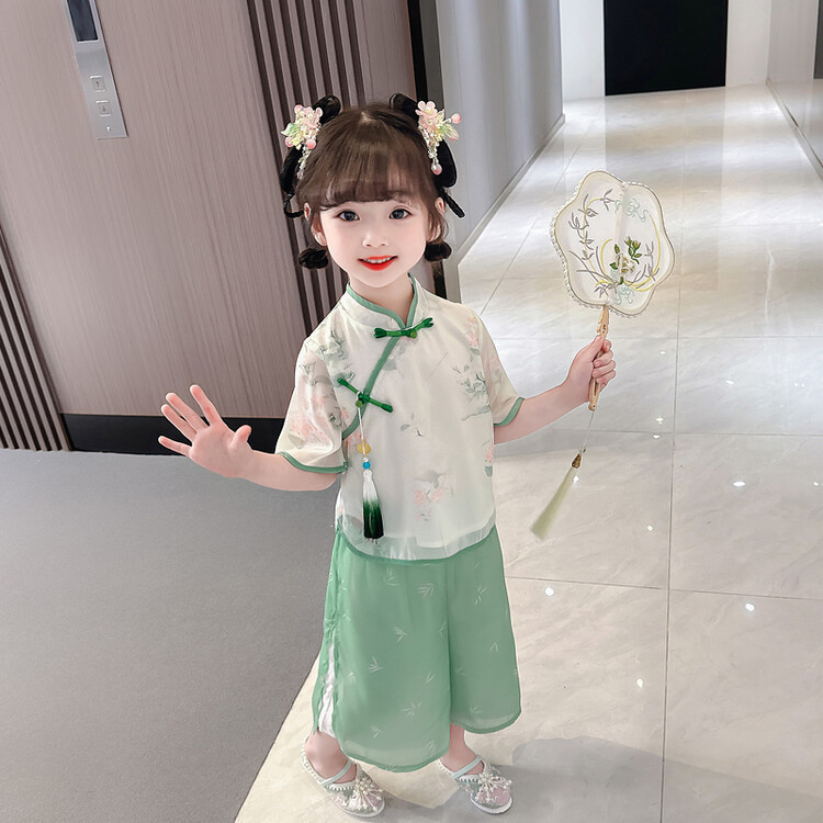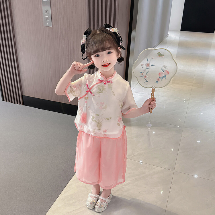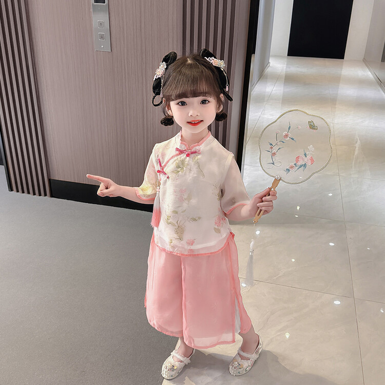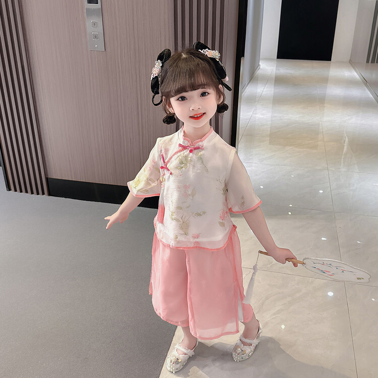 2023新しい夏の子供のチャイナドレスの洋気プリントプリンセスドレス中国風の民族の女の子のドレス