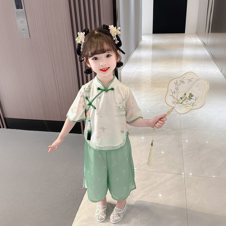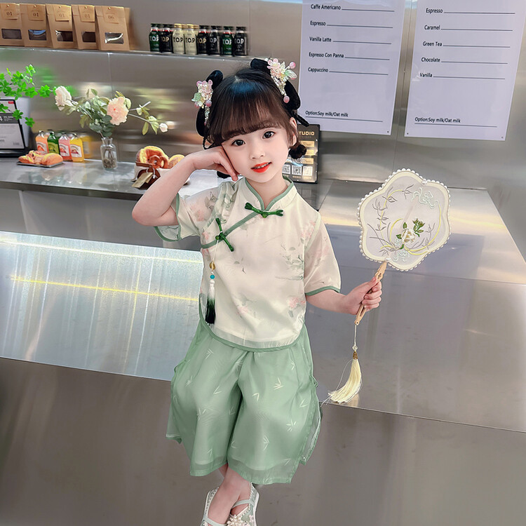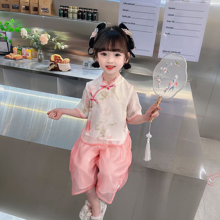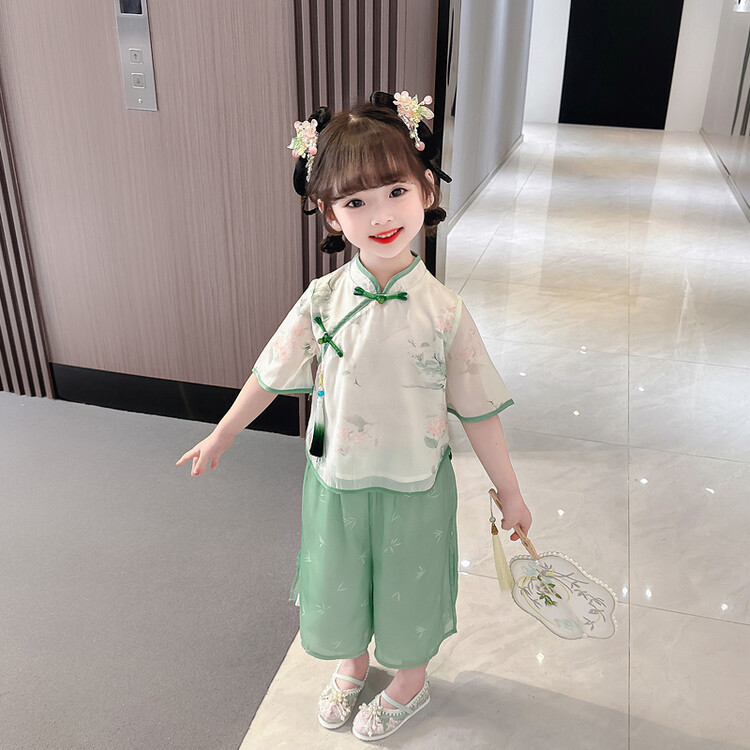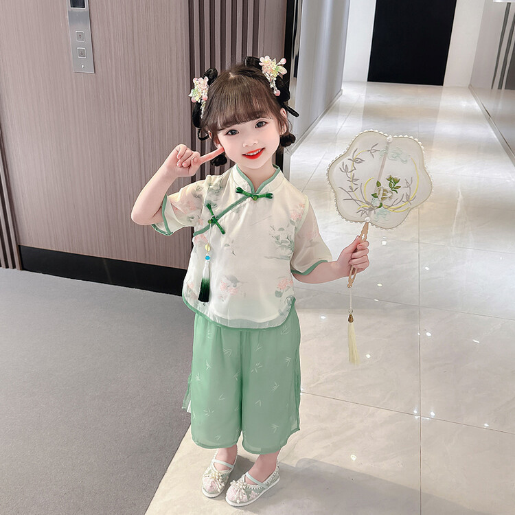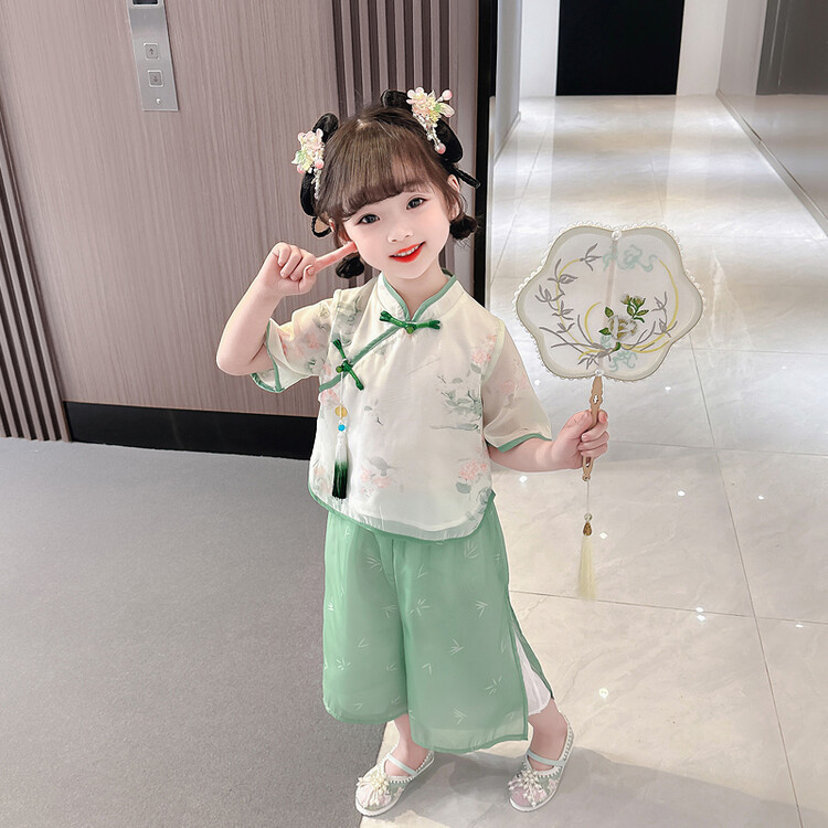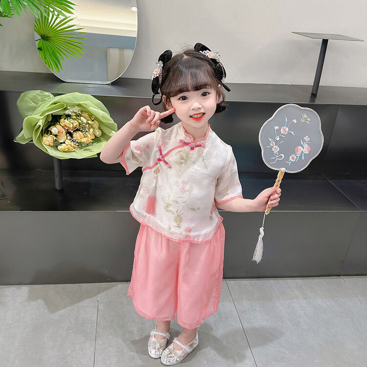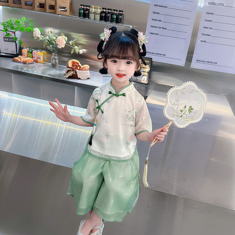 2023新しい夏の子供のチャイナドレスの洋気プリントプリンセスドレス中国風の民族の女の子のドレス