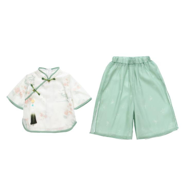 子供の唐の服の新型の夏のスーツの男の子の半袖の綿の漢服の赤ちゃんの中国風の男の子の唐の服の公演服