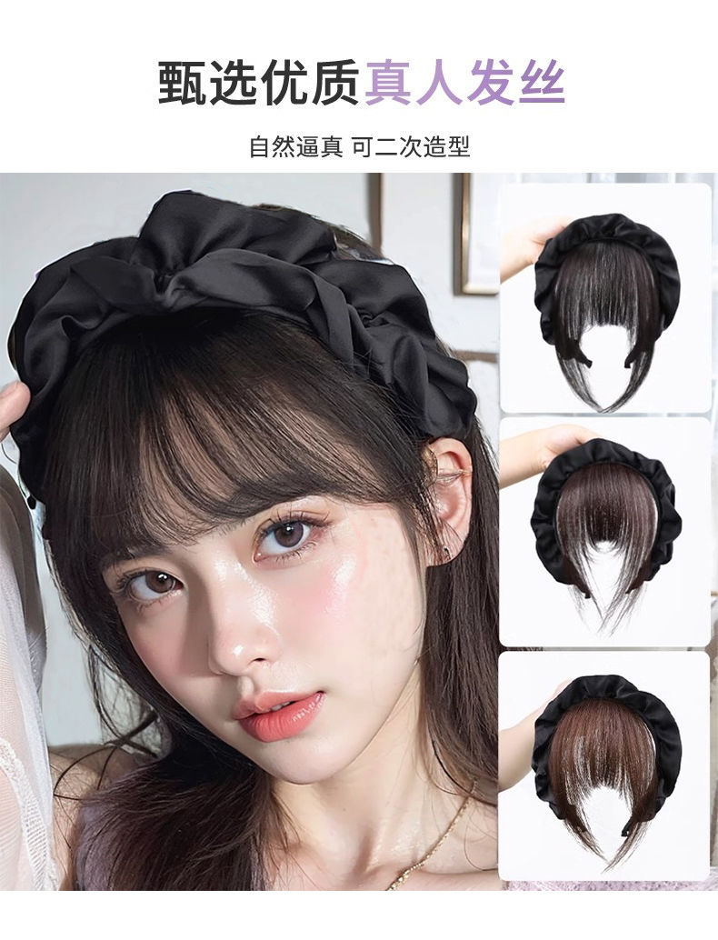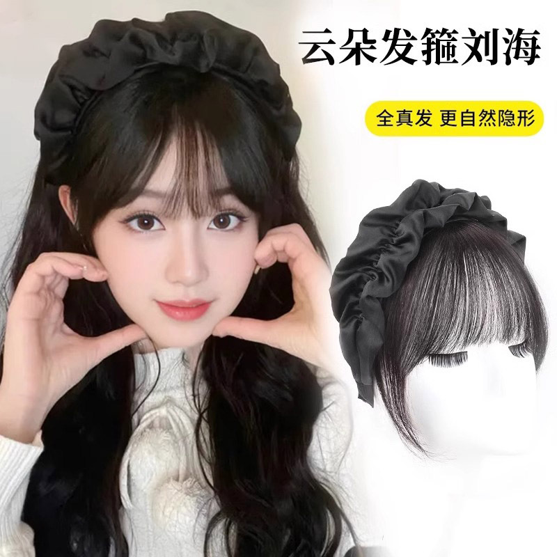 前髪ヘアバンド一体型ウィッグ 女性用 本物の髪雲状ヘアバンド 前頭の白髪隠し 頭頂部補充用エアリーな前髪ピース
