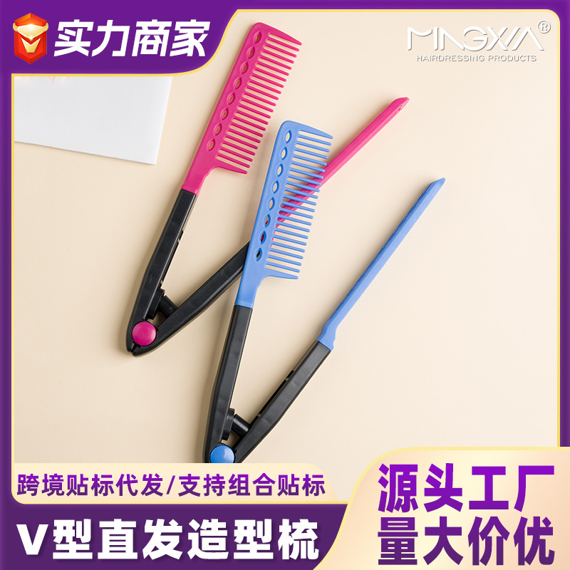 亚马逊跨境美发梳盘发造型梳V型夹式发梳家用美发拉直梳子批发