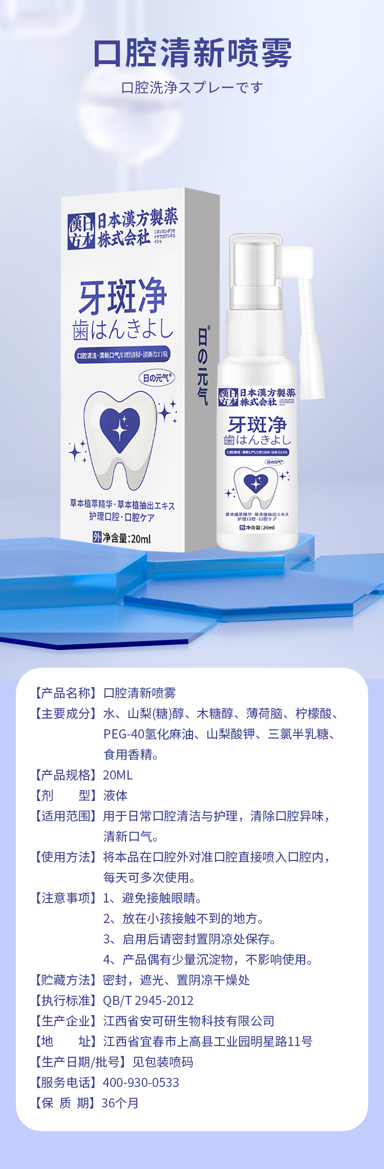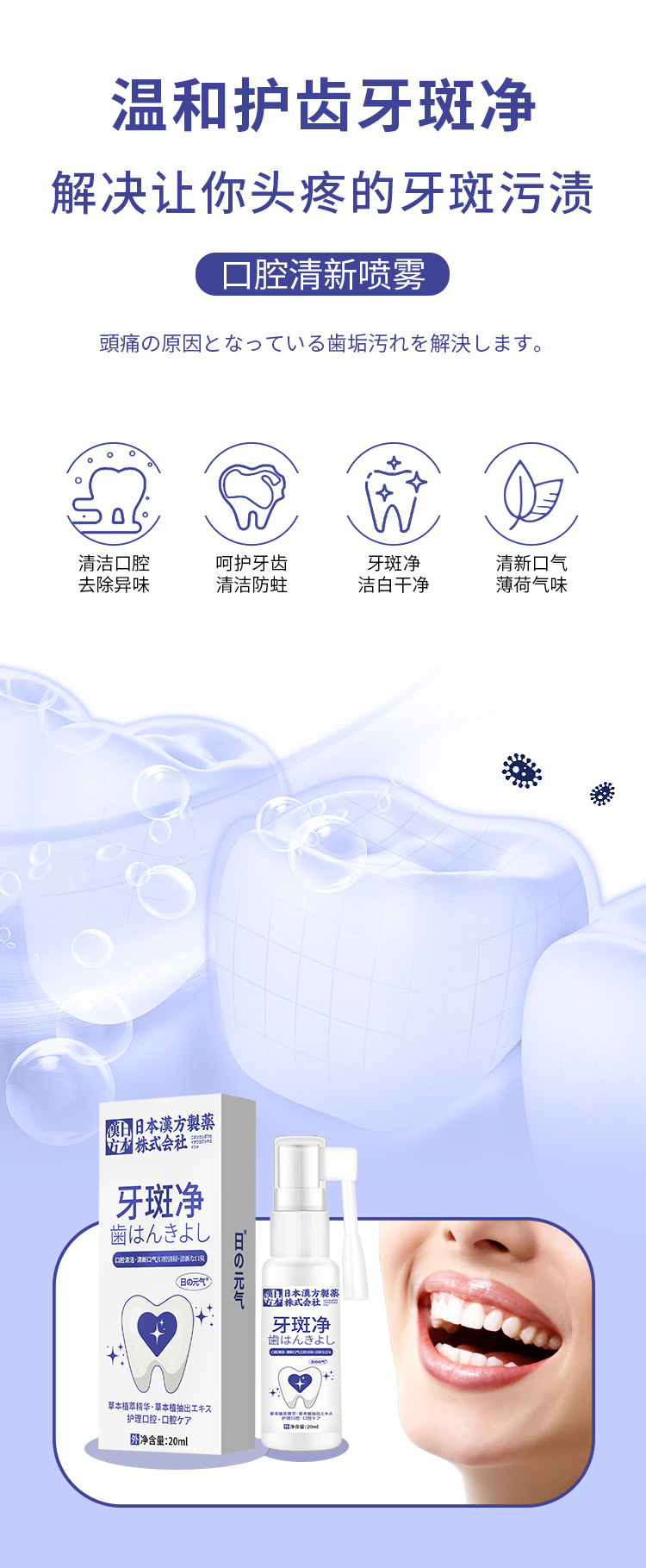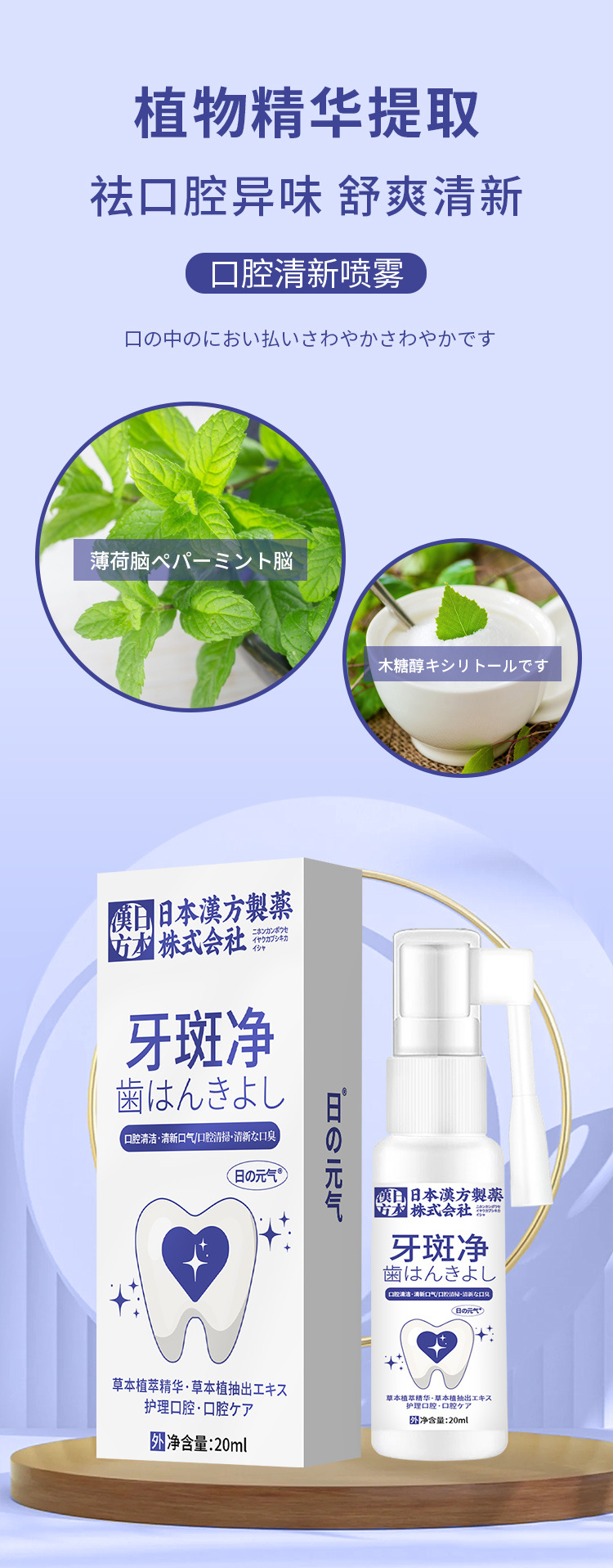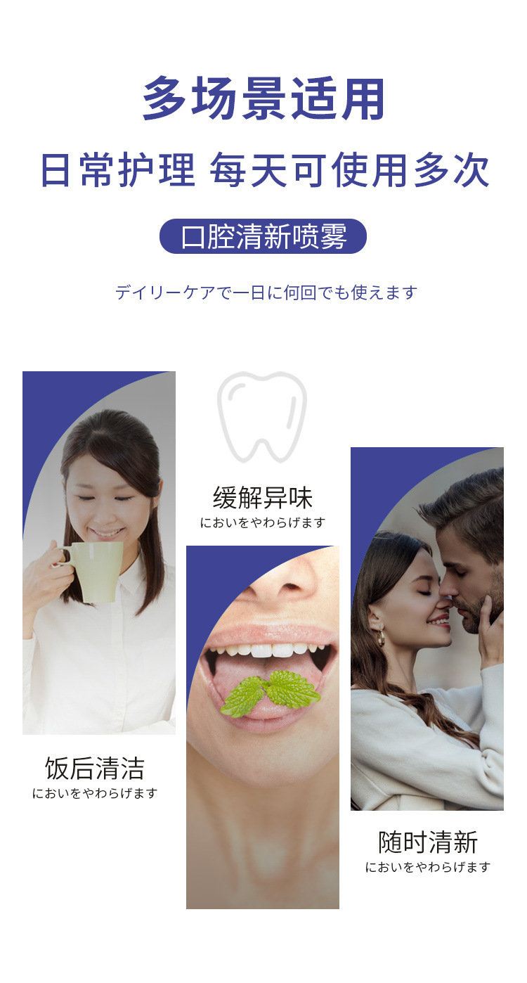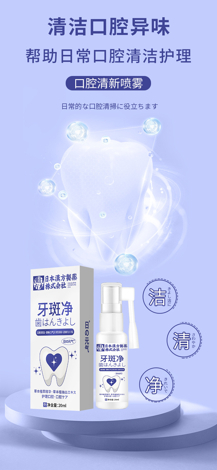 日本の漢方の歯のぶちのきれいな口腔の清新な噴霧の口腔の清潔で清新な息の外用の看護はo emができます。