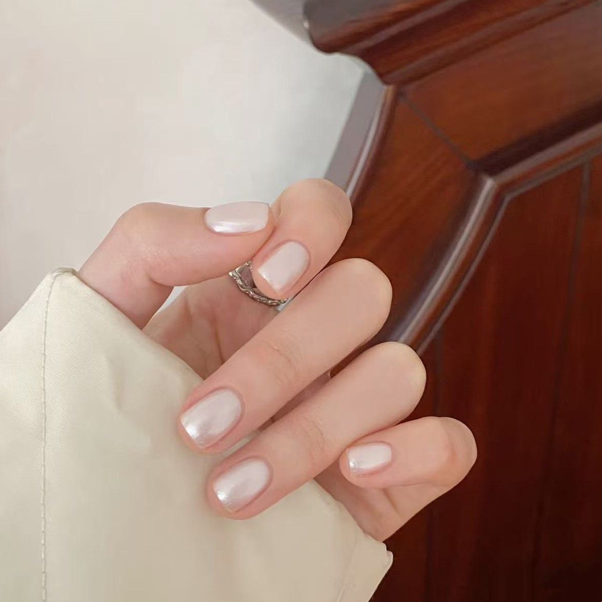 ヌード系ネイルマニキュアは、乾燥した防水が持続し、色が落ちない2025夏に白く見える