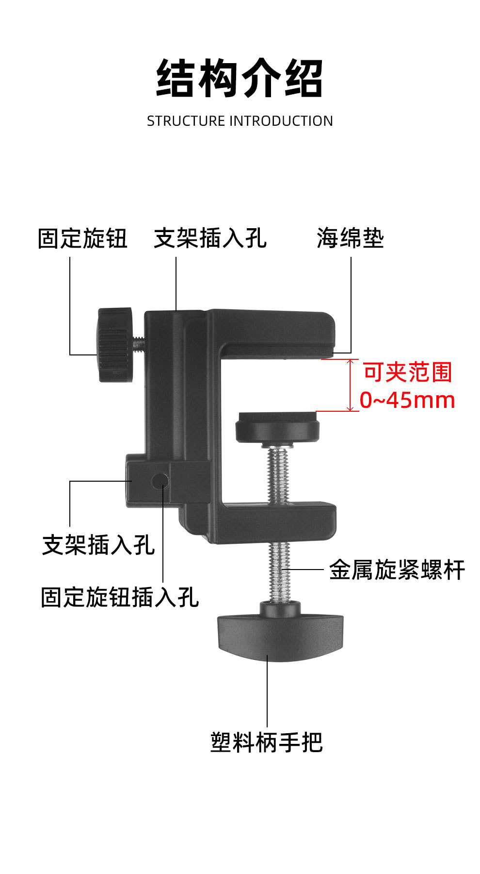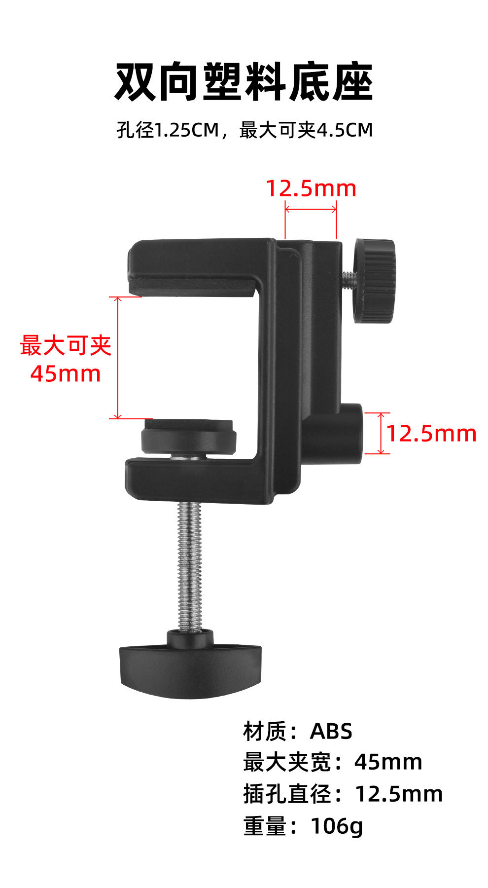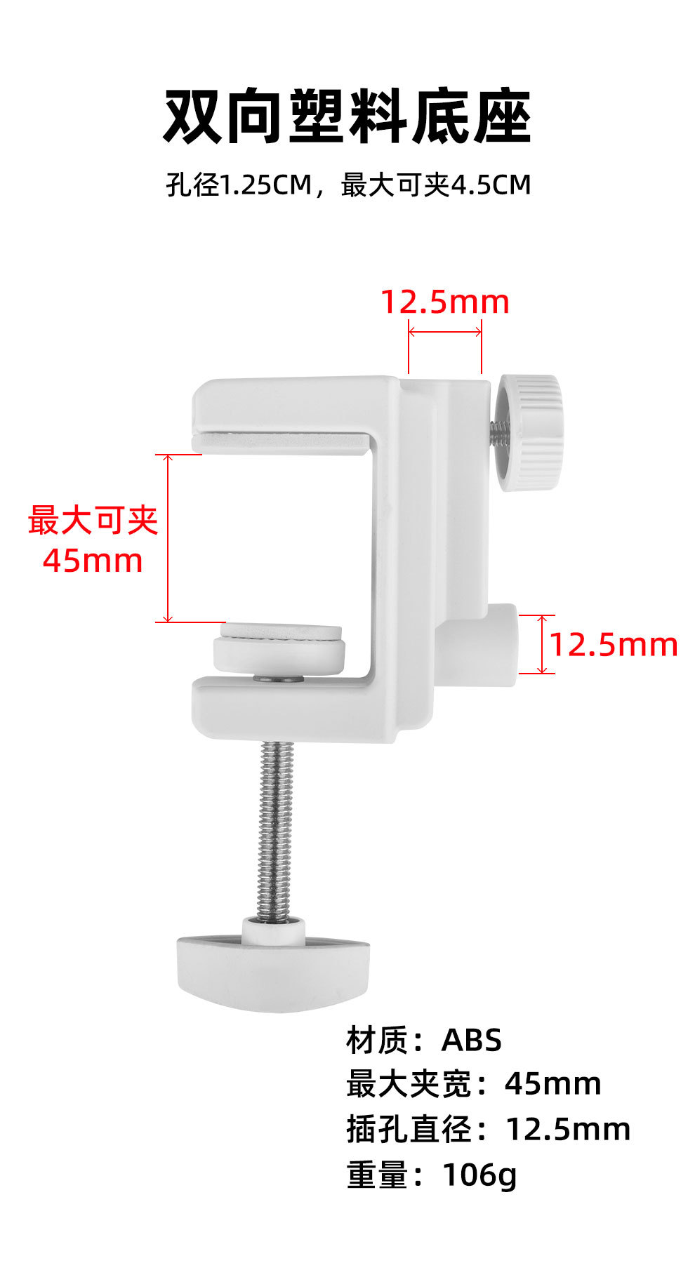 生中継マイク怠け者デスクトップ固定照明器具クリップ双方向プラスチックベース片持ちブラケットベッドサイド台ライトクリップ