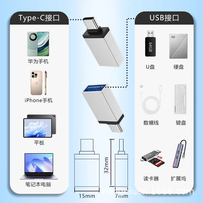 type-c手机OTG转接头批发适用苹果1516USB转换器U盘读卡器键盘TPC
