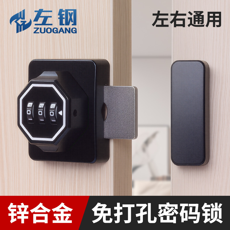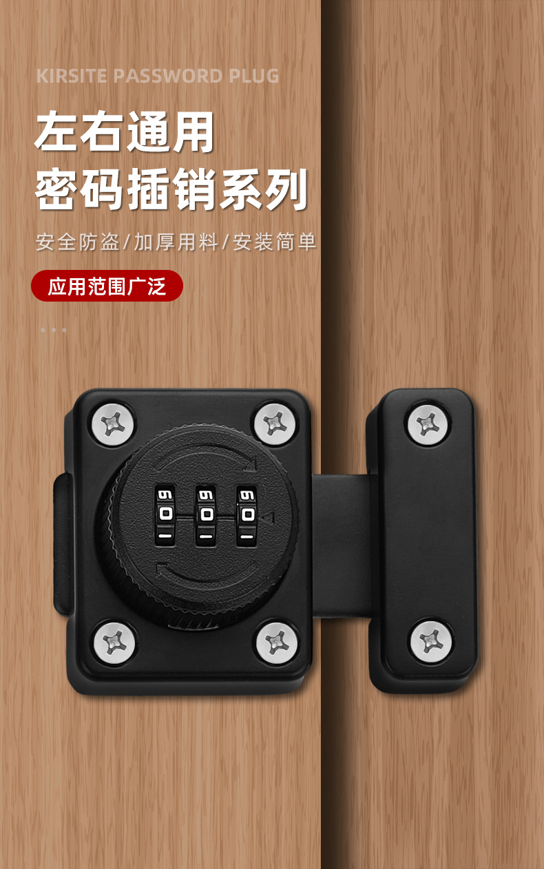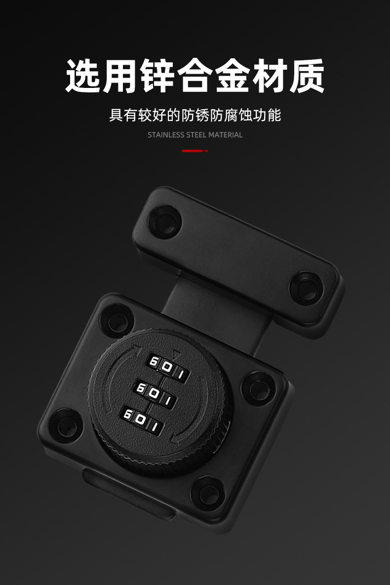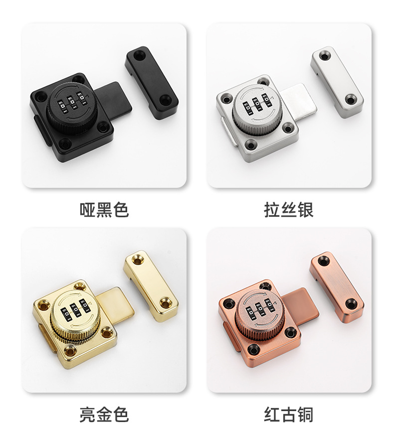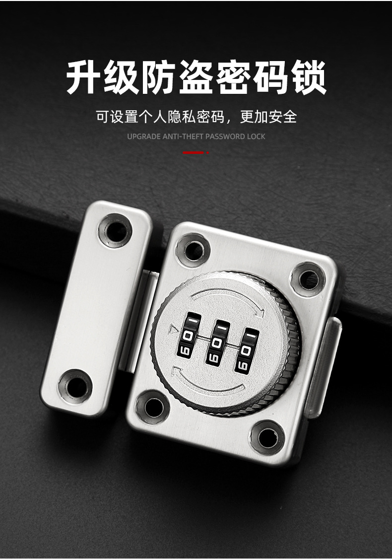 免打孔家用抽屉锁密码插销锁门栓推拉移门卡扣明装老式柜门密码锁