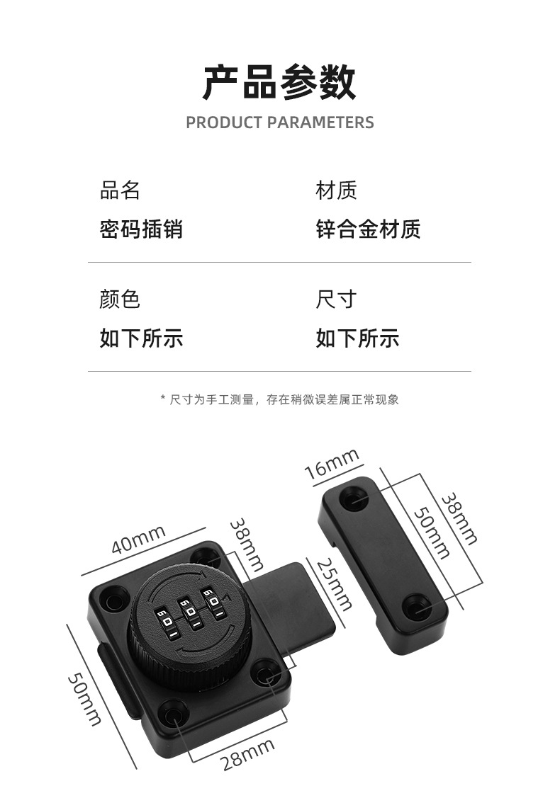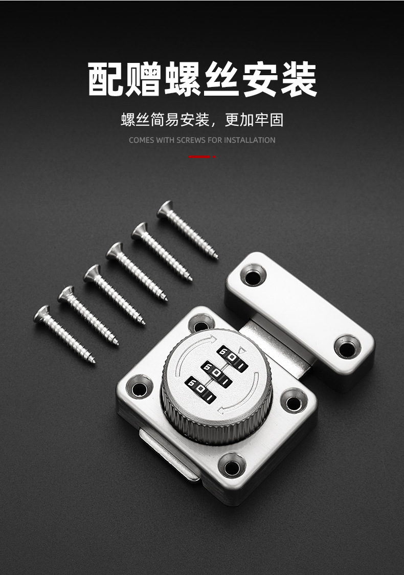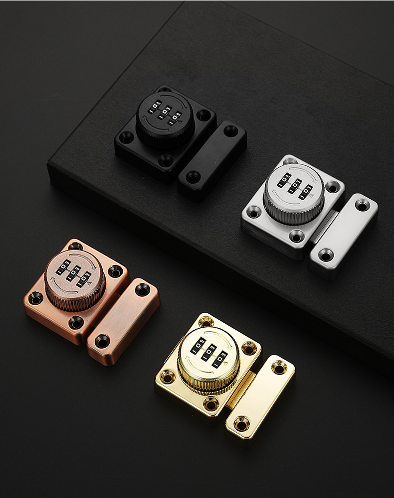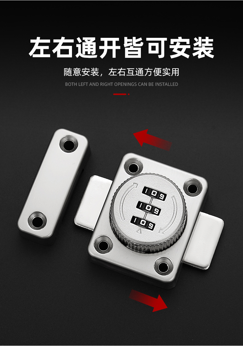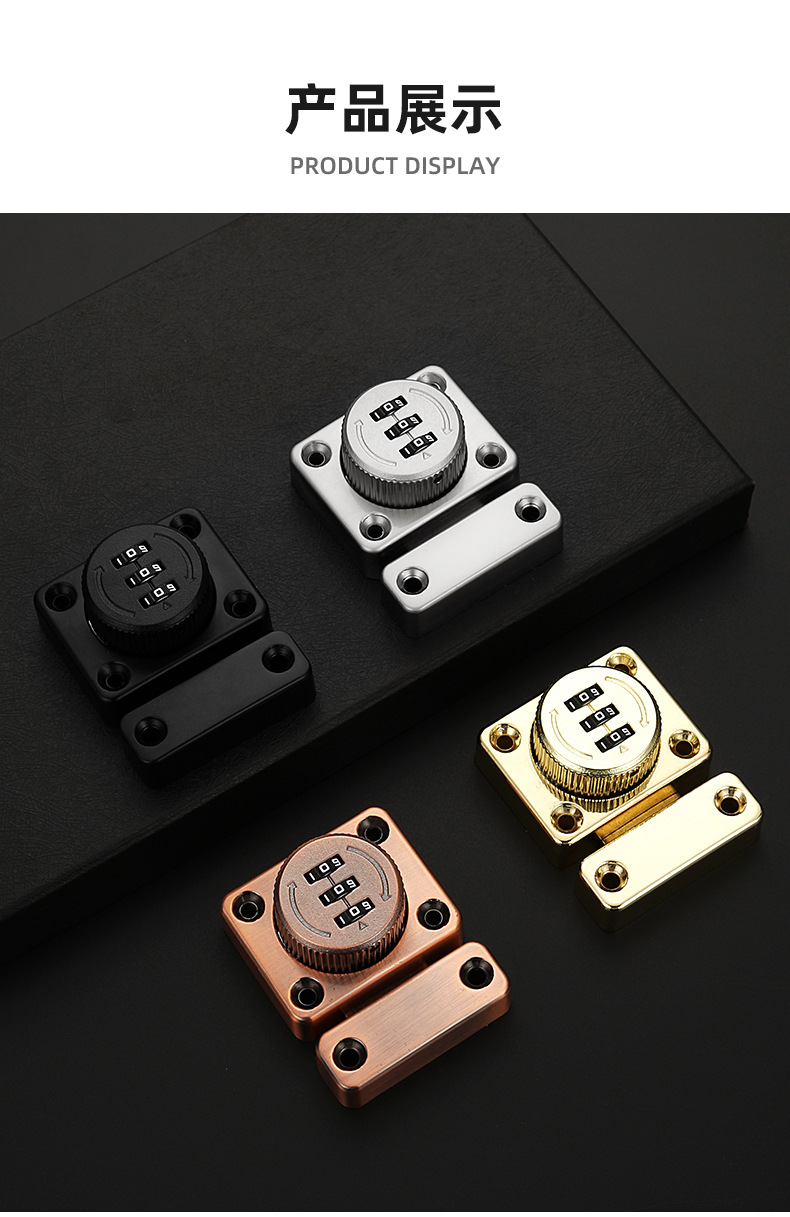 免打孔家用抽屉锁密码插销锁门栓推拉移门卡扣明装老式柜门密码锁