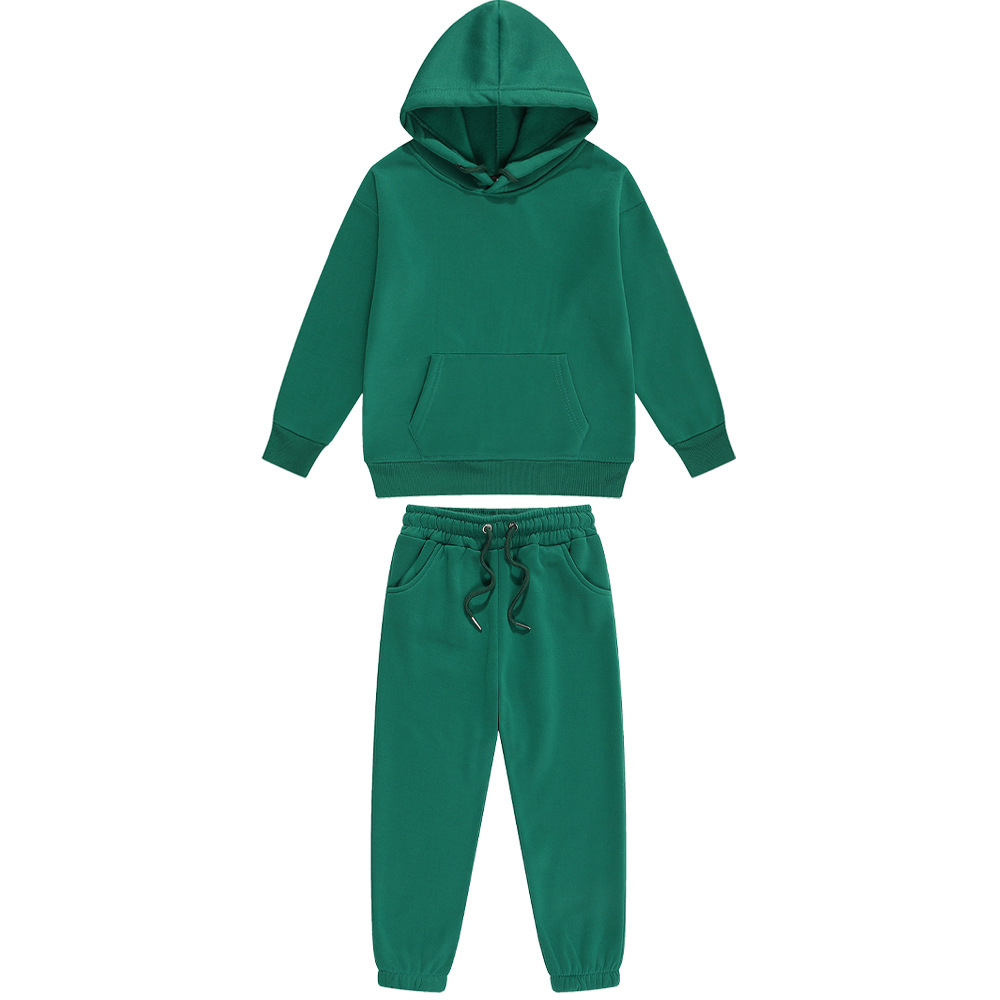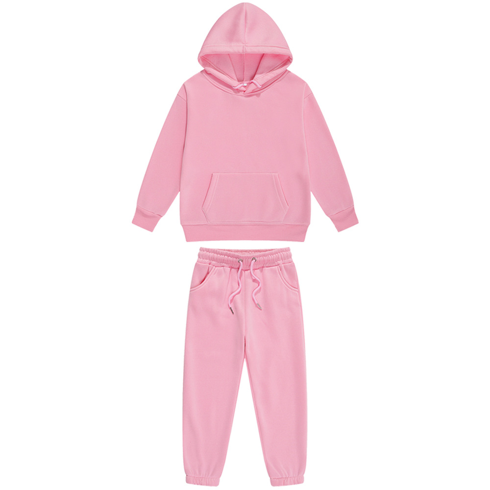 跨境2025年秋冬季儿童连帽卫衣卫裤套装纯色基础款两件套现货直发