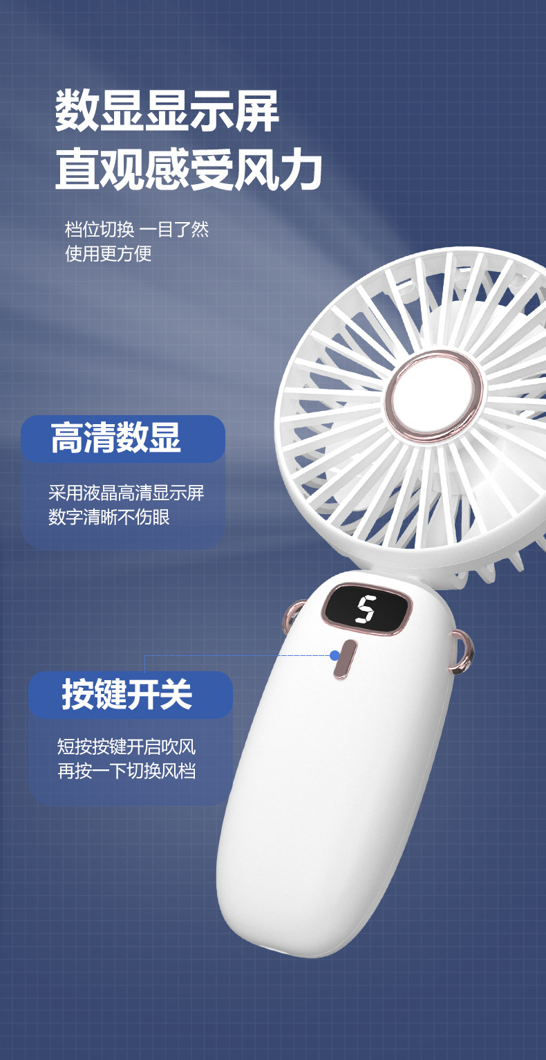 デジタル表示の小さい扇風機の携帯型の大きい風力の折り畳みの扇風機の静音は学生の寮のミニusb扇風機を携帯します。