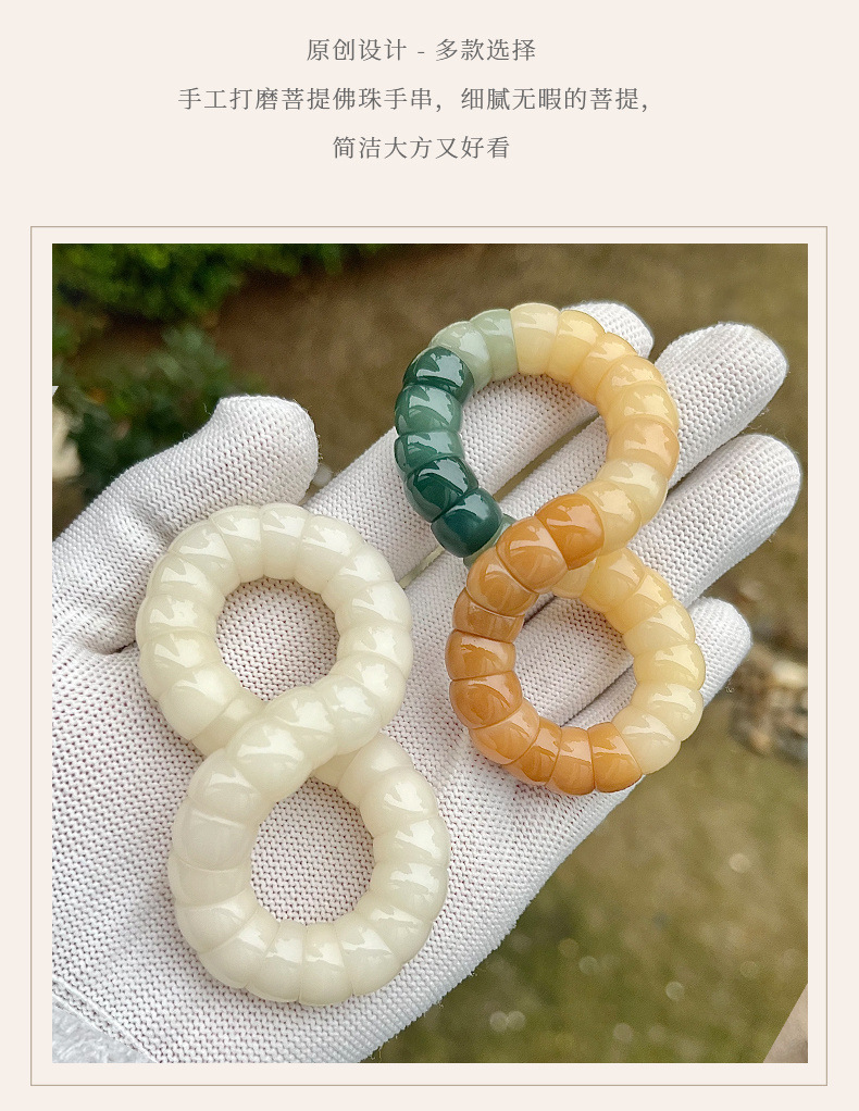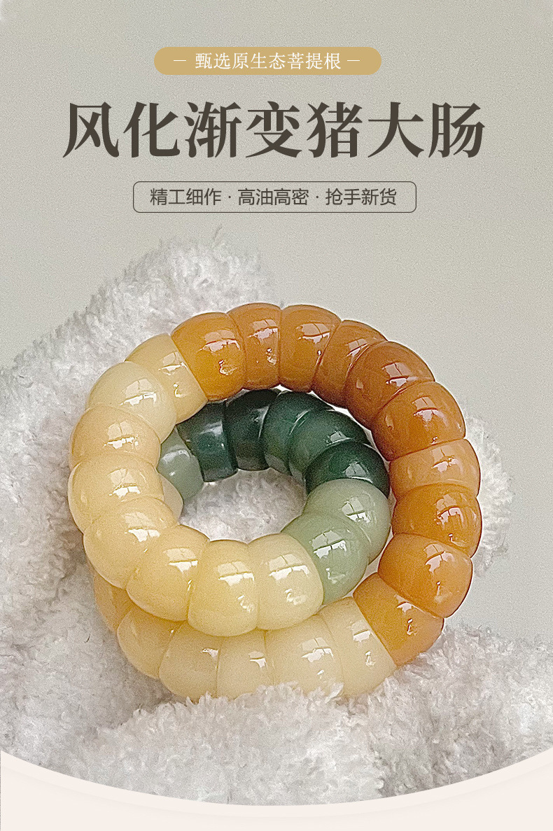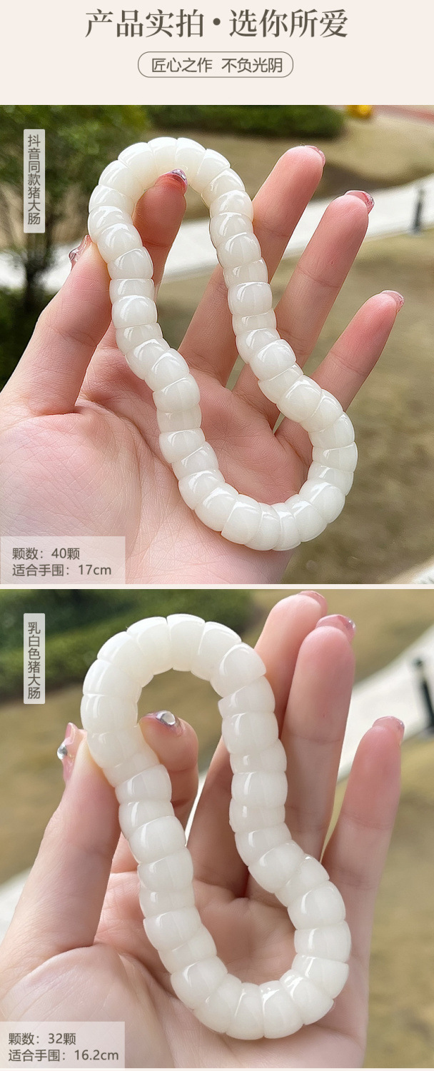 豚の大腸の菩提の乳の白い手の串は指の柔らかい解凍の神器の皿を巻いて女の子の仏珠の文を遊んで数珠のブレスレットを遊びます。