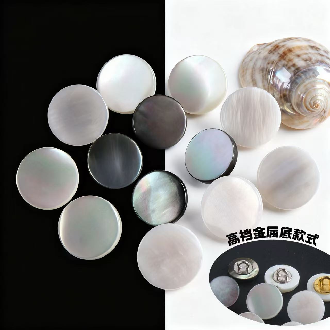 塔螺银色手缝扣 开衫毛衣衬衫风衣毛衣女式贝壳与金属的碰撞