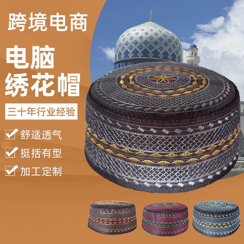 国境を越えた売れ筋の刺繍入り帽子メンズ帽子サウジアラビア連邦礼拝帽子卸売ドロップシッピング新疆礼拝帽子メンズ工場