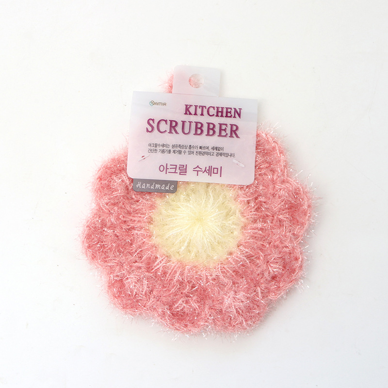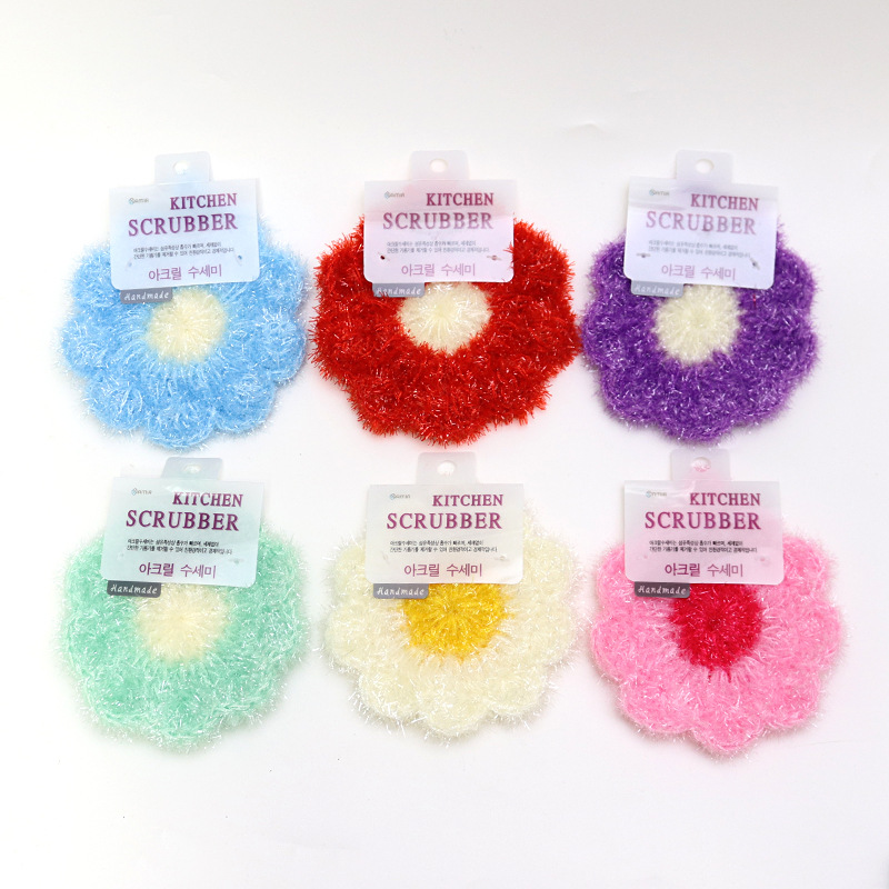 新しい完成品韓国インアクリルひまわり食器洗いタオル純粋な手編みのファッショナブルな鍋を傷つけないたわし