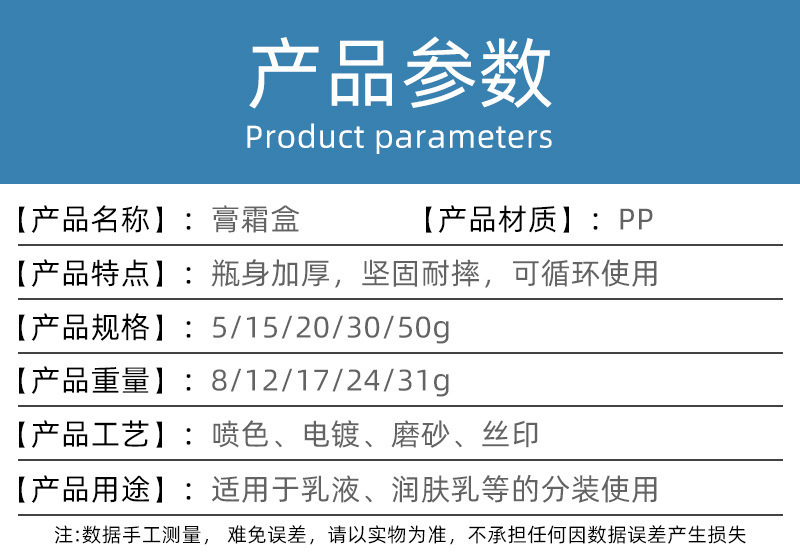 メーカー現物pp材質クリームケース多規格クリームボトル単層厚さクリームケース化粧品分注ケース