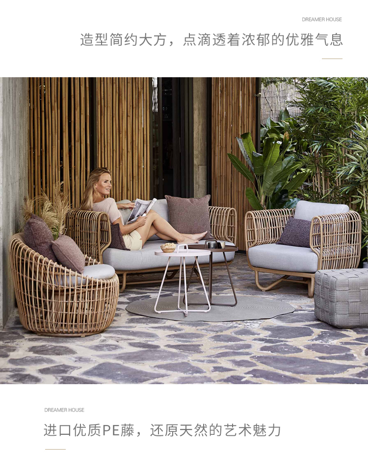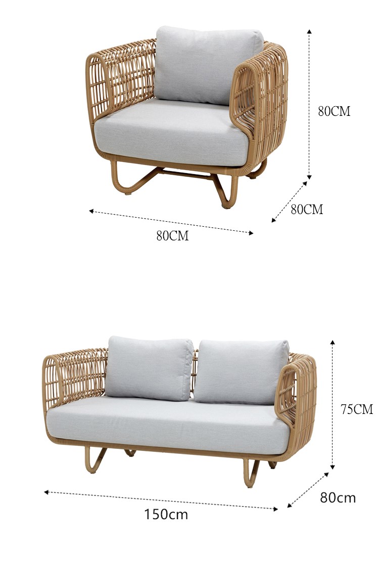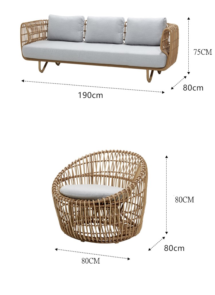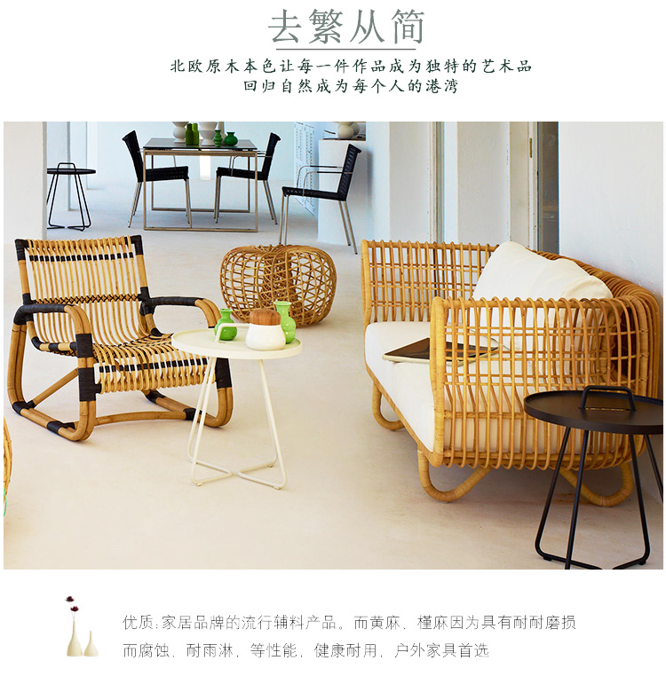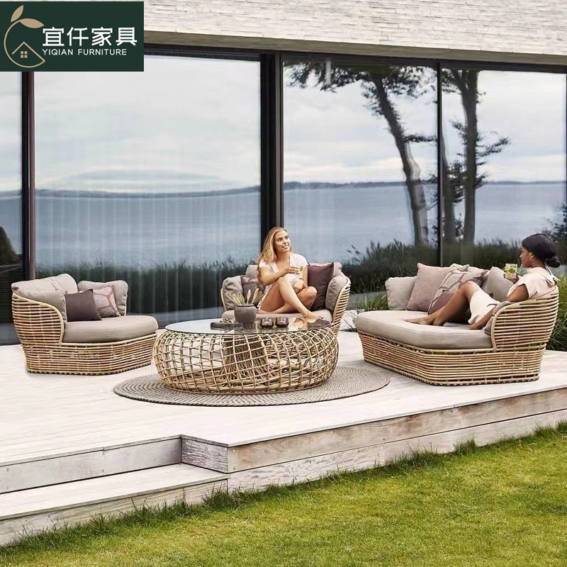 北欧屋外ソファ中庭屋外バルコニーヴィラ籐椅子組み合わせ防雨日焼け止め屋外レジャー籐織家具